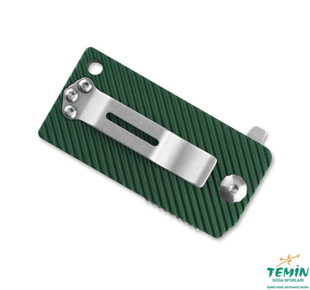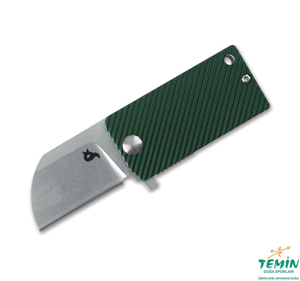 Kompakt boyutlarına ek olarak, pratik key-flange çakı, her şeyden önce ortaya çıkan kesme görevleri için kesinlikle günlük kullanım özellikleriyle öne çıkar. Taş yıkama yüzeyli 440A sheepfoot ağız, flipper ile açılır. Astar kilidi bıçağı güvenilir bir şekilde sabitlerken, yeşil alüminyum sap üzerindeki jimpingler mükemmel bir tutuşu garanti eder. Bir kordon deliği ve bir klips (uç yukarı/r) ile birlikte verilir.