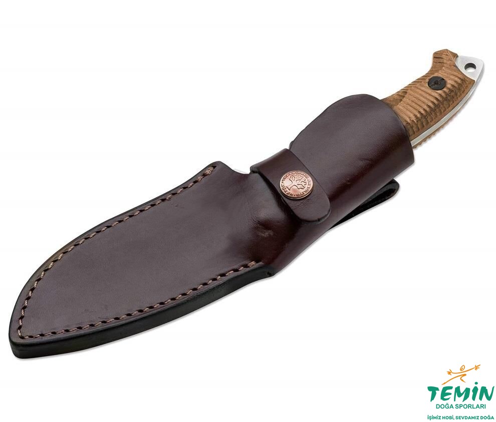 Arbolito serisinin en modern tasarımlarından biri olan Buffalo Soul, özellikle günlük kullanım için uygun bir versiyonla tamamlandı. Bıçak Böhler N695 çeliğinden yapılmıştır ve olağanüstü kenar tutma ve iyi bileme özelliklerinin yanı sıra korozyona karşı olağanüstü dayanıklıdır. Bıçağın sağlam full-tang tasarımı rahatça dengelenirken, yeni Oryx stilindeki Guayacan abanoz sapı, çapraz olukları ve ergonomik parmak olukları ile olağanüstü kullanım güvenilirliği sağlar. Sap ve omurga üzerindeki yivli başparmak rampası, güçlü baskı kesimlerine olanak tanır. Kordon deliği ve basma düğmeli kilitli birinci sınıf deri kılıf dahildir.