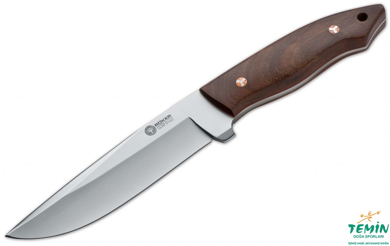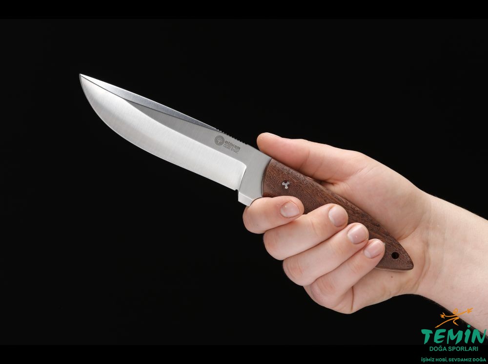 Bu etkileyici av bıçağı, kamp ve doğa gezileri için de harika bir yol arkadaşıdır. Yekpare N695 çelikten yapılmış bıçağın ağzı içbükey (hollow grind) açılmıştır. İnceltilen sırtı, bıçağın görselliğine rahatlık kazandırırken saplanabilme yetisine de katkı sunar. Balçağa yakın yerde gövde arkasındaki kavramaya yardımcı çentikleri (jimping) kontrolü artırır. Kırmızı fiber katmanlar (kırmızı fiber liner) üzerine mozaik pimlerle monte edilen Guayacan abanoz (kahverengi, sert ve ağır ahşap elde edilen bu ağacın Latince ''lignum vitae'' ismi hayat ağacı anlamına geliyor) sap, dalgalı-konik yapısıyla kavramayı güçlendiren bir ergonomi sunar. Sapta kordon deliği (lanyard hole) de bulunmaktadır.