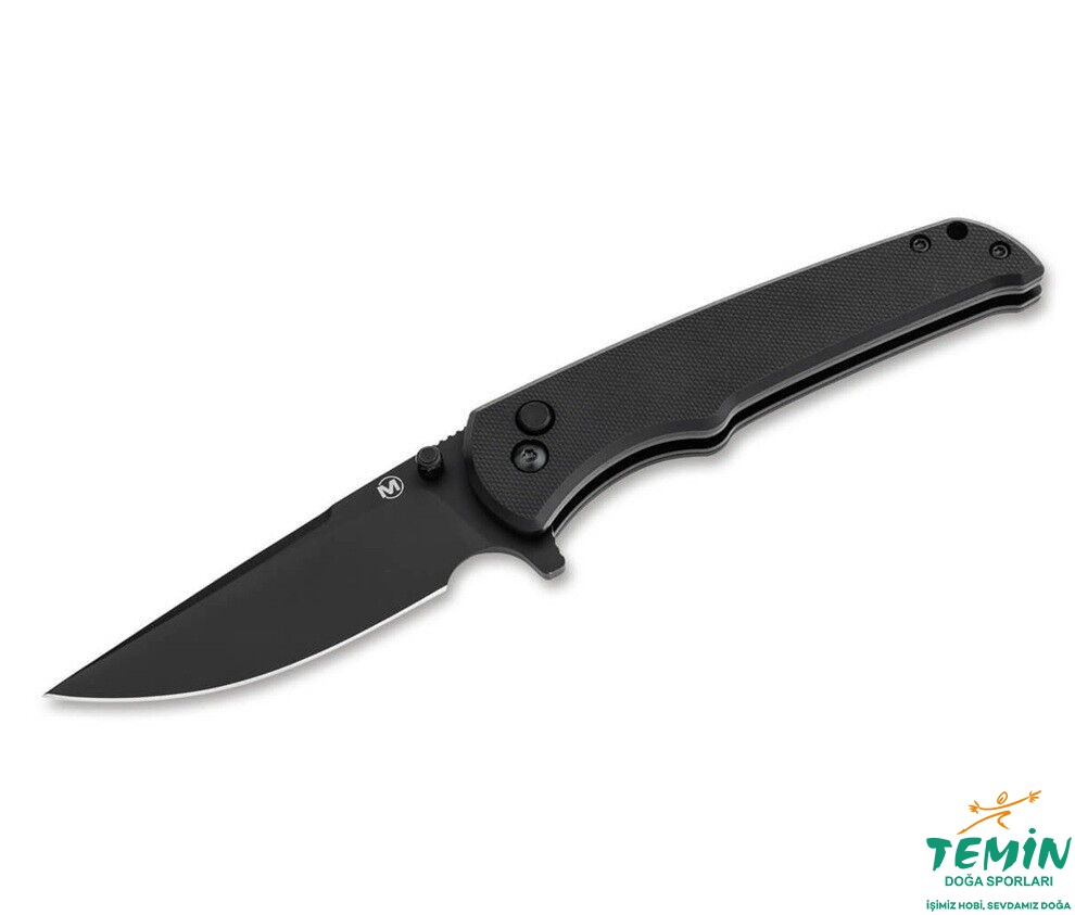 Tam siyah Blackjay; flipper, parmak girintisi ve jimping ile daha güvenli tutuş hedefler. 440A siyah namlu, G10 sap ve tip-up sağ klipsle taşımaya hazır; 90 mm / 121 g.