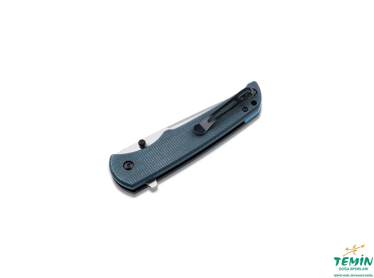 Sapının dip kısmının arkasına doğru bir kordon deliği (lanyard hole) de açılan Böker Magnum Bluejay (01SC722), uç yukarı-sağ (Tip up/R) olmak üzere konumlandırılmış cep klipsi (çıkarılabilir) sayesinde, kolaylıkla taşınabilmektedir.