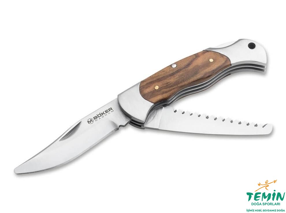 Magnum Classic Hunter Slim Kids, 440A'dan yapılmış saten cilalı klipsli ucu ile güvenli bir çocuk çakısı olarak ikna eder ve her genç izci ve maceracının ekipmanını tamamlar. Özellikle çocukların elleri için tasarlanan çakı, orijinal Magnum Classic Hunter Slim'den önemli ölçüde daha küçüktür ve güvenlik nedeniyle yuvarlak bir uca sahiptir. Hem ana bıçak hem de çok yönlü testere tırnak çentiği ile açılır ve kazara katlanmayı önleyen sağlam bir arka kilit ile ayrı ayrı kilitlenir. Kıvrımlı kabza yüzeyi Akdeniz zeytin ağacından yapılmıştır ve ele rahatça oturur. Pratik bir kordon deliği ile birlikte verilir.