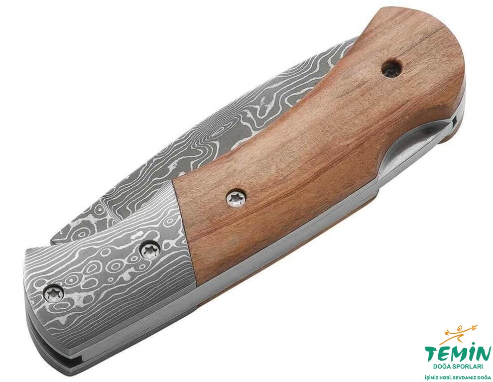 Herkesin kıskanacağı birinci sınıf ve yüksek kaliteli bir çakı. Ağız kısmı 71 katmanlı paslanmaz damascus çeliğinden yapılmıştır. Kabzalar da aynı değerli malzemeden yapılmıştır. Kaliteli zeytin ağacının kullanıldığı kabza pullarında da hiçbir masraftan kaçınılmamıştır. Backlock kilit mekanizması sayesinde ağzın kazara katlanması engellenir. Klipssizdir.