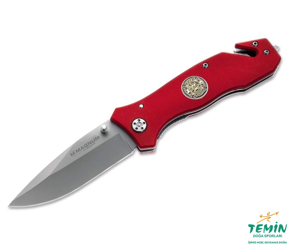 Magnum Fire Birgade itfaiye ekibi, cam kırıcı, kemer kesici, taşıma klipsi ve korozyona dayanıklı 440A paslanmaz çelik gibi tüm gerekli donanımlarla kusursuz bir şekilde donatılmıştır.