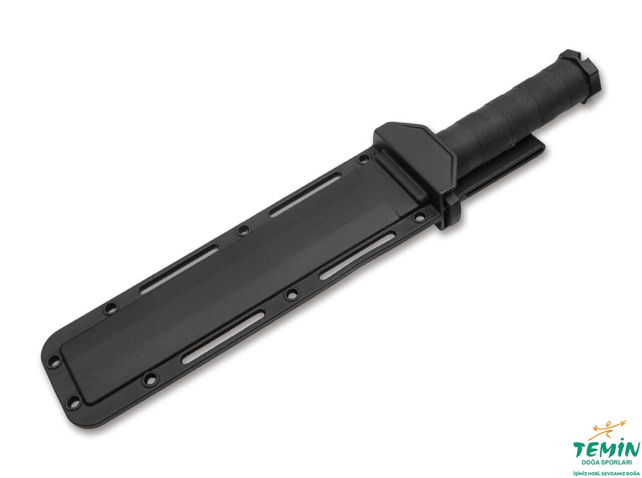 Bıçak, içine mükemmel şekilde oturduğu ve siyah plastikten imal edilen bir kılıfa sahiptir. Kılıfa bütünleşik ve klips şeklinde olan kemer aparatı sayesinde, kılıfı belinize takmak için kemerinizi çözmenize gerek yoktur. Ayrıca kılıfın kenarlarında bulunan açıklıklar (kordon delikleri ve kayış geçme yerleri), bıçağınızı ister giysiniz ister ekipmanınız üzerine ve çok çeşitli biçimlerde sabitleyebilmenizi mümkün kılmaktadır.