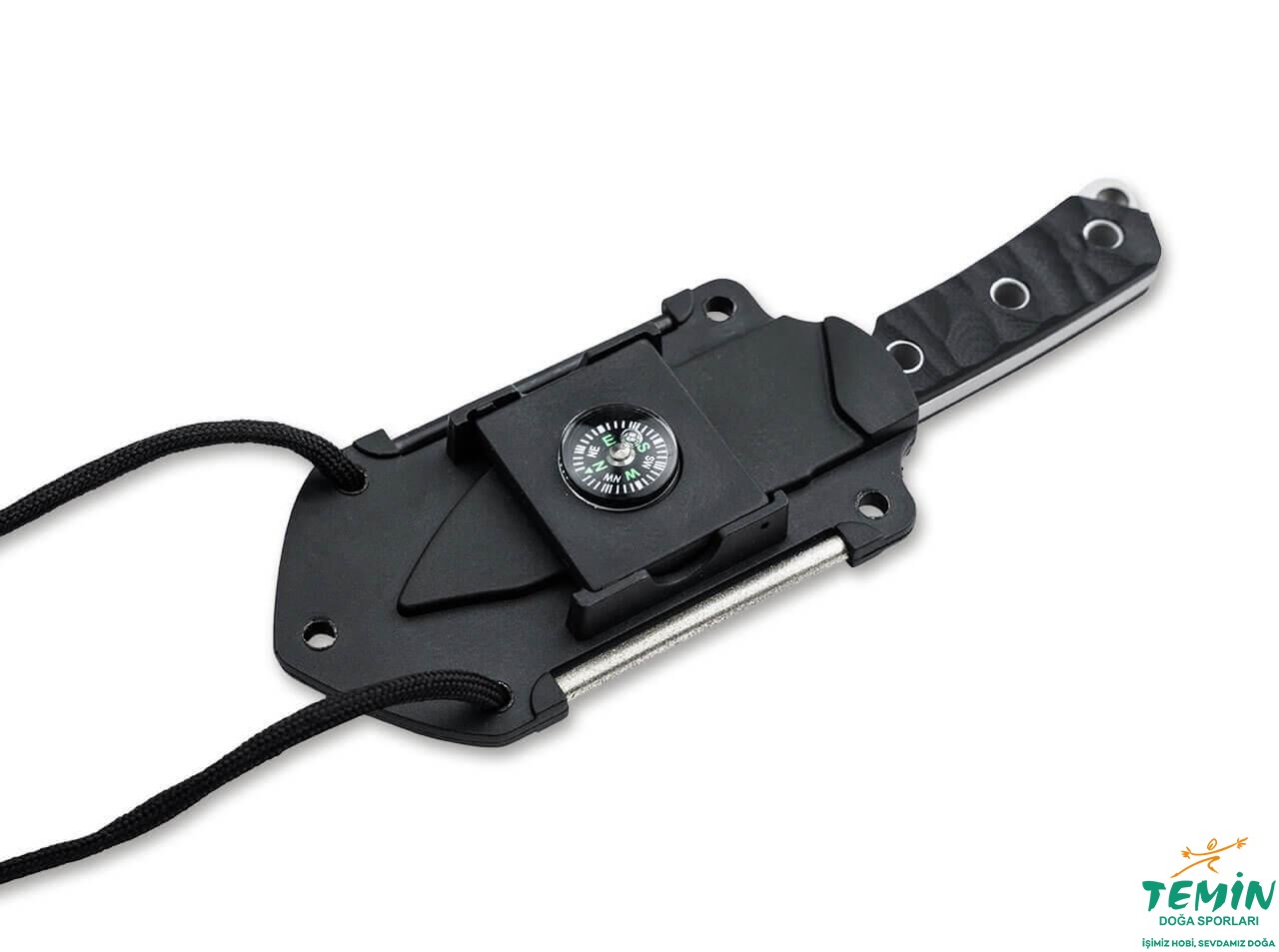 Yedek bıçak olmanın ötesine geçen ürün, içine tam oturduğu plastik kılıfı (siyah) ile sunulmaktadır. Kılıfın marifetli bir kılıf olması için çaba gösterilmiştir. Kordon (birlikte verilmektedir) sayesinde boyna asabileceğiniz ve kordon deliklerinden faydalanarak kemere de sabitleyebileceğiniz kılıfın üzerinde; pusula, sinyal aynası, bir elmas yüzeyli bileme aleti ve bir ateş başlatıcı çubuk da yer almaktadır.