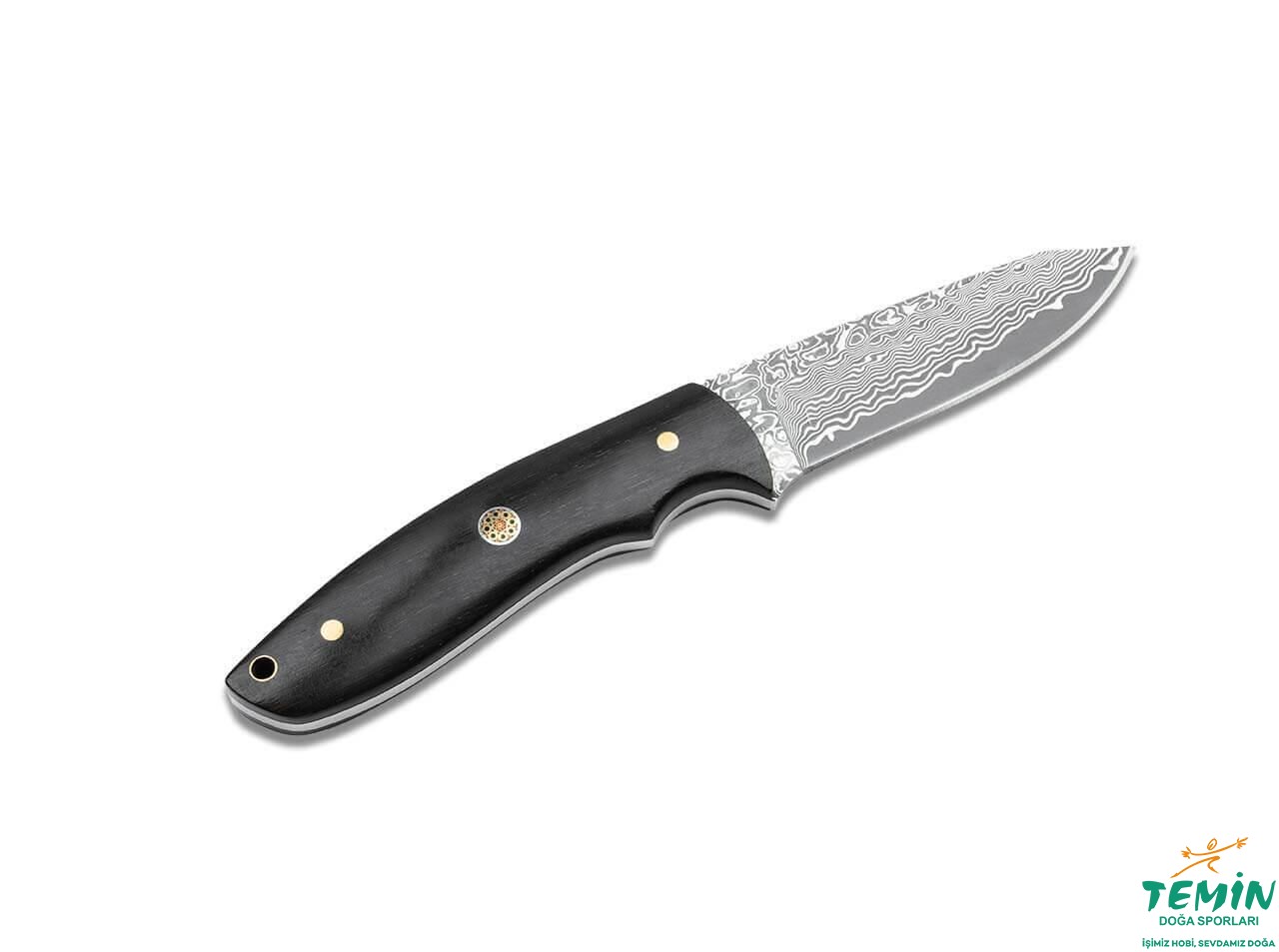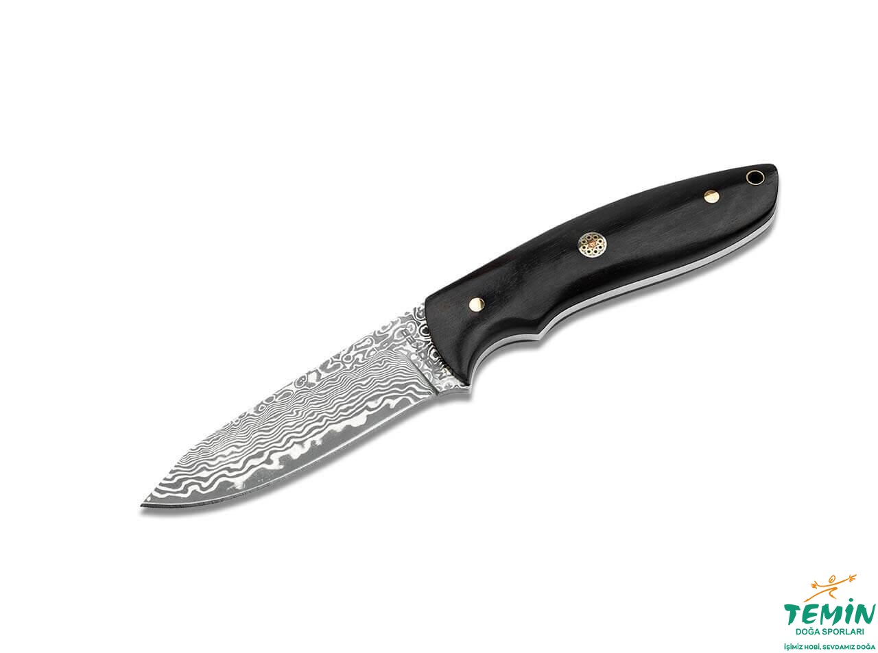 Bıçak meraklıları için reçetesiz satılan bir ilaç (!) mahiyetinde olan, kaliteli malzemelerle imal edilen ve estetiği işlevsellikle birleştiren Böker Magnum Vernery Damast Knife (02SC018DAM), yüksek kalitedeki deri kılıfıyla (siyah, tulum) sunulmaktadır.