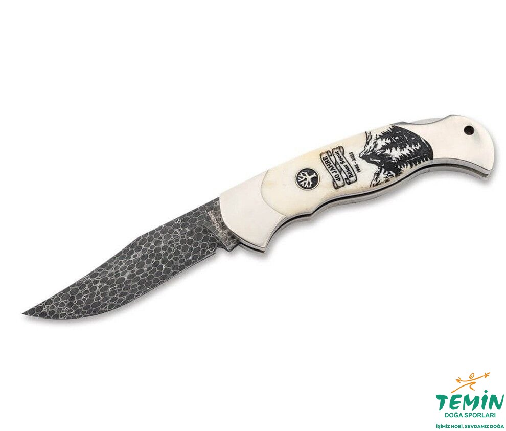 Kırk; sizin için! 1985 yılından bu yana Boker Scout, avcılar ve maceraperestler için güvenilir bir yol arkadaşı olmuştur. 2025 yılında seri, 40. yılını kutluyor ve bu özel koleksiyon bıçağıyla bu özel günü şenlikli bir görünümle anıyor. Büyük kutlamaya davet edilen 99 seçkin bıçak meraklısı, bu özel bıçağın sapını bizzat eline alıp asil bıçağa övgüler yağdırabilecek.