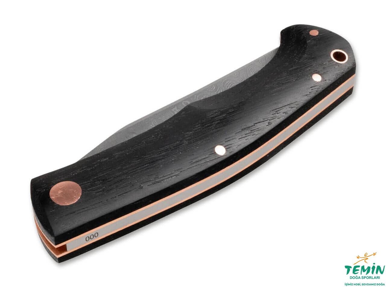 Böker’in Solingen’deki fabrikasında, el işçiliğiyle, sadece 999 adet üretilen ve seri numarası taşıyan Böker Annual Damascus 2022; sertifikası ve şeffaf sergi kutusu ile sunuluyor.
