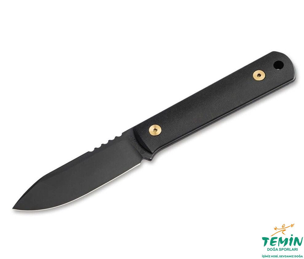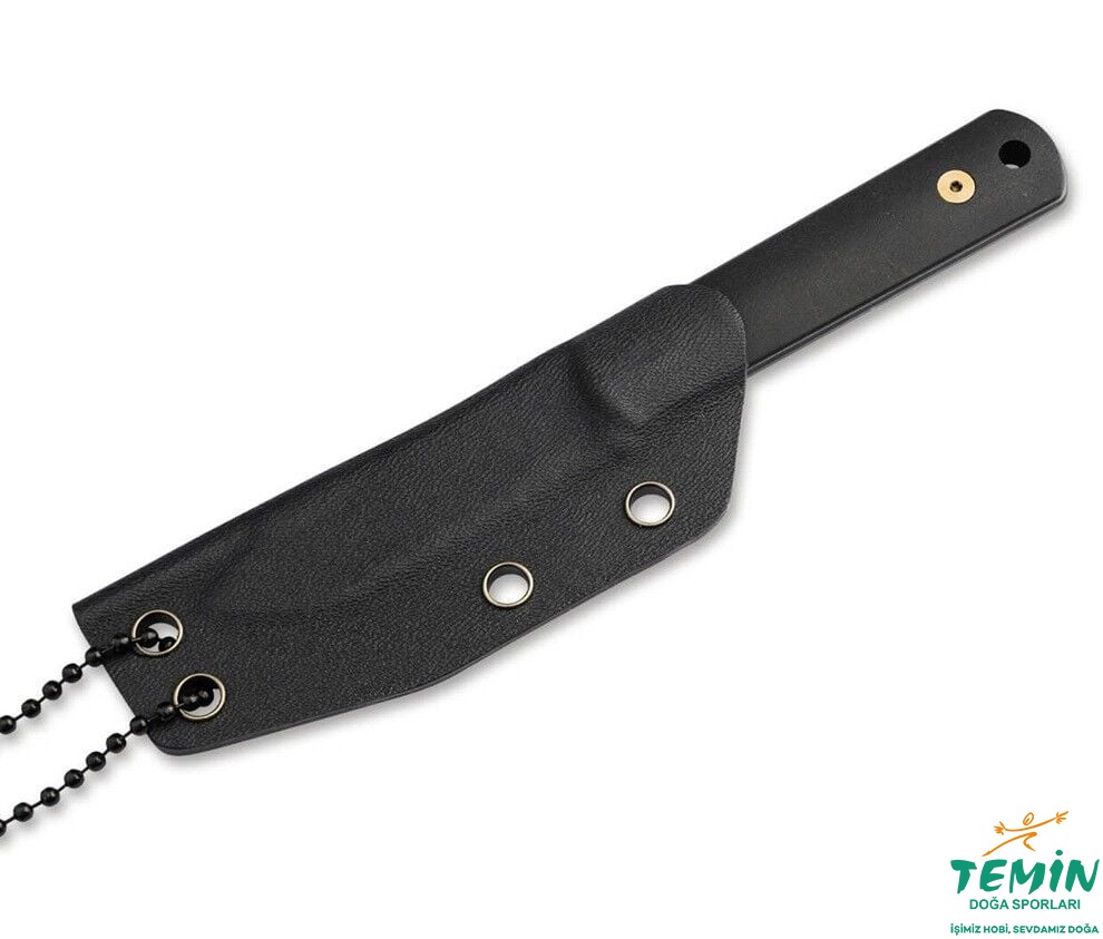 Maksimum özveri ile minimalist bir tasarım: sınırsız bir keşif ruhu için en saf haliyle, saf bir Burnley eseri daha karşınızda. ABD'li bıçak üreticisi Lucas Burnley, Boker BFF Packlite Stargaze ile başarılı BFF serisini, FSC sertifikalı veya geri dönüştürülmüş kağıt ve reçineden yapılmış son derece sürdürülebilir bir kompozit malzeme olan Richlite'den yapılmış çıkarılabilir sap, tüy kadar hafif bir iskelet bıçakla genişletiyor. Toz metalürjik CPM MagnaCut'tan (61-62 HRC) yapılmış, serakot kaplamalı drop-point ağza sahip siyah ve tam çelik yapı, olağanüstü kesme özellikleri ile maksimum stabilite anlamına gelir. Sert, dayanıklı, korozyona dirençli ve sağlam, hiçbir bıçak daha fazla performans sunamaz. Zarif bir ricasso, bıçağın arkasındaki çarpıcı jimpingler ve altın ışıltısını ısıtma yoluyla elde eden vurgulayıcı sap vidaları, sabit bıçağın çevik karakterini hem görsel hem de işlevsel bir şekilde tamamlar. Tasarımcının post-taktik konsepti, kabzadaki ağırlık azaltıcı girintilerde şık bir şekilde uygulanmış ve böylece ek bağlantı seçeneklerine sahip tam teşekküllü bir boyun bıçağı olarak taktik iddiasını vurgulamıştır. EDC, taktik veya yedek bıçak olarak - BFF Packlite o kadar çok yönlüdür ki sınırlandırılması gerekmez ve her zaman yeni görevlere açıktır. Tam oturan Kydex kılıf ve bilyeli zincir ile birlikte verilir. Solingen'deki Boker Fabrikasında el yapımıdır.