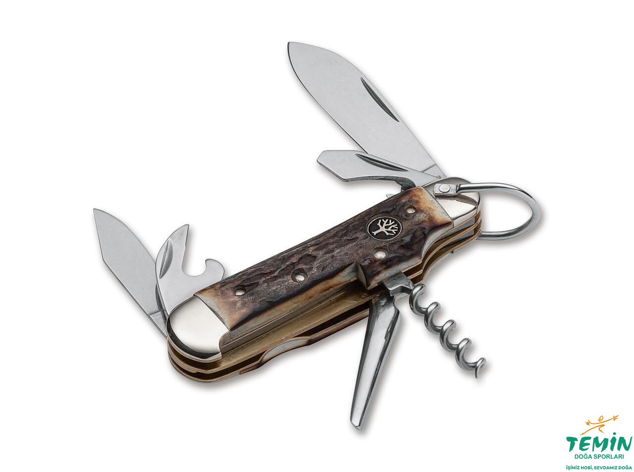Mekanik bir kilit özelliği bulunmayan çakının (slipjoint) biri büyük, diğeri küçük iki bıçak namlusu bulunmaktadır. Yapımında klasik Solingen bıçak çeliği 4034’ün (Bu çelik; namlu dayanımını, korozyon direncini ve kolay bilemeyi bir araya getirmektedir.) kullanıldığı kamp çakısının diğer ek aletleri şunlardır: Konserve açacağı, düz tornavidalı şişe açacağı, deri zımbası ve delik genişleticisi, tirbuşon.