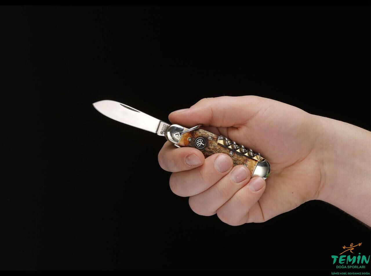 Sap, oldukça sağlam nikel gümüş (Alman gümüşü) ve geyik boynuzu sap malzemesinden oluşmaktadır. Eski tip nal şeklindeki dilsiz tokası, diğer deyişle kordon askısı sayesinde çakı, diğer nesnelere takılabilmektedir.