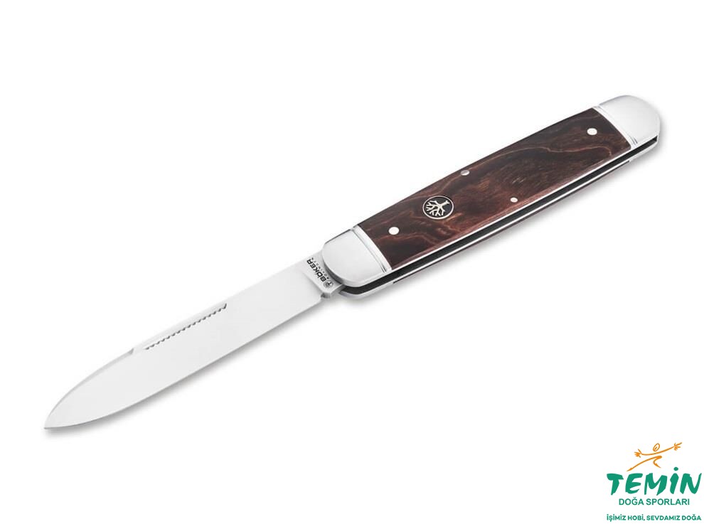 Kuzey Amerikalı sığır yetiştiricilerinin basit ve sağlam çakısı olarak ortaya çıktı. Tam boy olması, onu buzağı kesmekten atıştırmalık servis etmeye kadar çiftlikte ortaya çıkan tüm görevlere uygun evrensel bir çalışma aracı haline getirdi. Bu nedenle, Amerikan pazarında derin kökleri olan Böker markasının itibarını oluşturan tipik bir çakı modelidir. Çift bolster yapısı, sapın ağır yük altındaki uç kısımlarını korumuştur. Uzun çekme olarak da bilinen uzun tırnak çentiği, ince bir tırtığa sahiptir ve kibrit yakılmasına izin verir. Şimdi olduğu gibi o zaman da dayanıklılık, sürdürülebilirlik ve gerçek işçilik anlamına geliyordu. Boker Cattle Knife, hem dış mekanlarda hem de günlük şehir yaşamında tüm durumlar ve görevler için uygun olan tam boyutlu bir slipjoint çakıdır. Çelik olarak Böhler N690 çeliği tercih edilmiştir. Sıkı bir yay, ağzı açık konumda ve 90 derecede tutar. Kahverengi stabilize kıvırcık huş ağacından yapılmıştır kabza. Böker Manufactory Solingen'de tamamen el yapımı bir üretimdir. Yüksek kaliteli keçe kılıf ile verilmektedir.