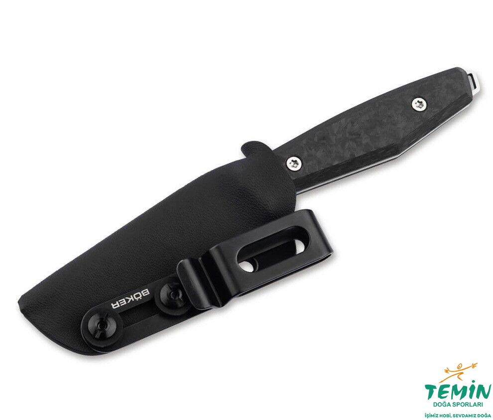 Ergonomik şekilli sap kabzaları, vahşi karbon fiberden yapılmıştır ve tutması rahattır. Bunlar, birlikte verilen torx anahtarı kullanılarak kolayca sökülebilir ve Daily Customs ile birlikte geliştirilen ve üretilen çok çeşitli alternatif ölçeklerle değiştirilebilir. Ayrıca, sapın ucundaki karmaşık şekilde üretilmiş kordon deliği, sap kapakları söküldüğünde ters çevrilerek sapın içine gizlenebilir. Tamamen tam tang gibi MagnaCut'tan üretilmiştir ve üretim toleransları minimum düzeydedir. Bu, bıçağın mümkün olan en kısa sürede kendi gereksinimlerinize göre uyarlanabileceği ve duruma göre değiştirilebileceği anlamına gelir.