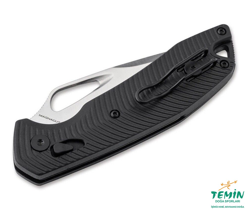 Görevin güzelliği, vicdanlı, güvenilir ve her zaman hafif taktiksel. Boker DTK (Duty Tactical Knife), zorlu bir doğaya ve adanmışlığa açık bir bağlılığa sahip bir go-getter'dır. Gerçek bir zevk olarak kesmek, bir vaatten ziyade algılanabilir bir gerçekliktir. Boker DTK'nın verimliliği, toz metalürjik CPM MagnaCut'tan (61-62 HRC) yapılmış saten cilalı, bilyeli bıçağı ile vurgulanır; iki parçalı taşlama, çekici ricasso ve yüksek mukavemetli uç ile taktik tanto şekli, hassas kesimden zorlu kesim işlerine kadar tüm yol boyunca ikna edicidir. Çakı çeliği maksimum stabilite ve olağanüstü kesme özellikleri sunarken aynı zamanda kenar tutma, sertlik, korozyon direnci ve tokluk sağlar ve tavizsiz performans garantilidir! Çakı, gözyaşı damlası şeklindeki başparmak deliği ile açılır ve ayrıca güvenli kullanım için başparmak çıkıntısında kaymaz jimpinglerle donatılmıştır. Çapraz çubuk kilidinin pratik sürgüsü çakının ağzını güvenli bir şekilde kilitler ve yüksek mukavemeti düşük ağırlıkla birleştiren cam elyaf takviyeli naylondan (GFN) yapılmış ergonomik sapa güzel bir şekilde yerleştirilmiştir. Kabza yüzeyinin parmak izi benzeri dokusu, çapraz çubuk kilidi, pivot vidası, kordon deliği ve ters çevrilebilir uç yukarı klipsin tasarım diliyle uyum sağlayarak ekstra bir dokunuş ve his sağlar. Boker DTK, yüksek kaliteli bir keçe kılıf içinde teslim edilir. Solingen'deki Boker Fabrikasında el yapımıdır.
