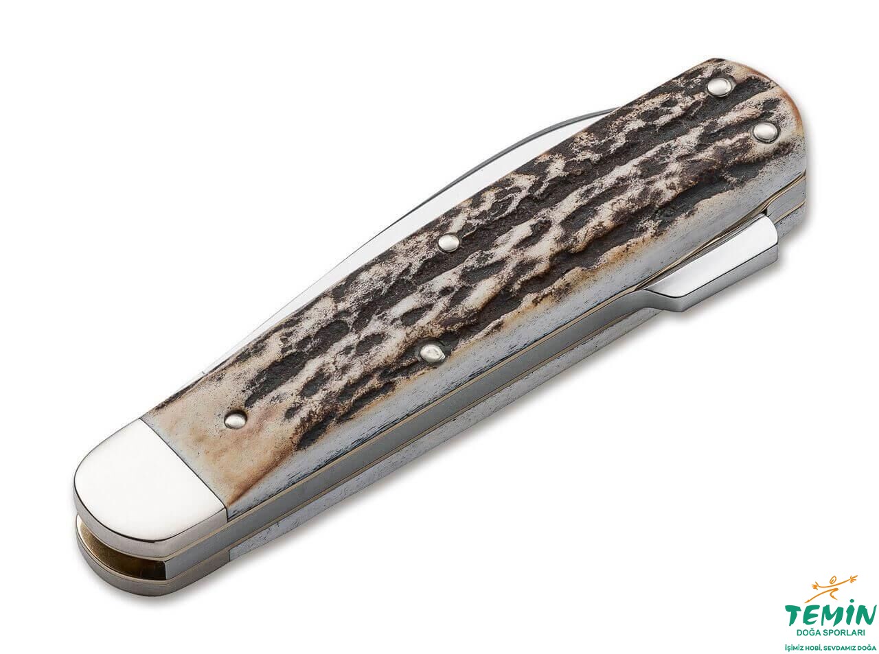 Klasik ve sağlam arkadan kilitli (lockback) model; eski usul yuvarlak uçlu namlusuyla, yüzey şekillerinin korunduğu ve iyi kavranan geyik boynuzu sap malzemesiyle, gümüş nikel (Alman gümüşü) balçaklarıyla köklerine bağlı kalmaktadır.