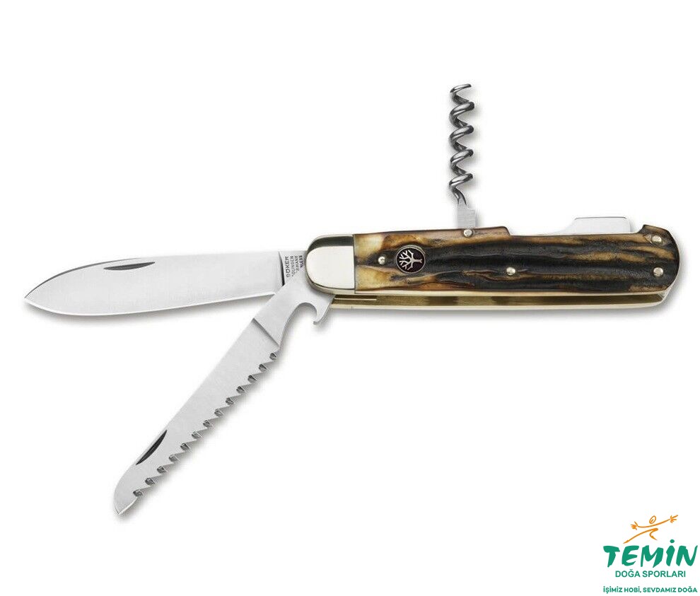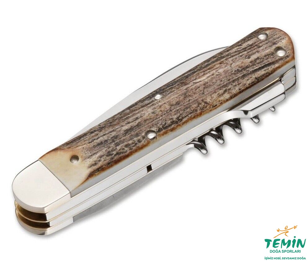 Boker Hunters Knife Trio geleneksel avcıları memnun etmeye devam ediyor. Geyik boynuzundan yapılmış klasik kabzalar çakıya olağanüstü bir çekicilik katıyor. Geyik boynuzundan yapılmış bıçak kabzalarının bir özelliği de kendilerine özgü şekilleridir. Ahşap saplar esas olarak damarları ve renkleri bakımından farklılık gösterirken, geyik boynuzundan yapılmış kabzalar da her bir parçayı benzersiz bir sanat eseri haline getiren çok özel yüzey yapılarıyla karakterize edilir.