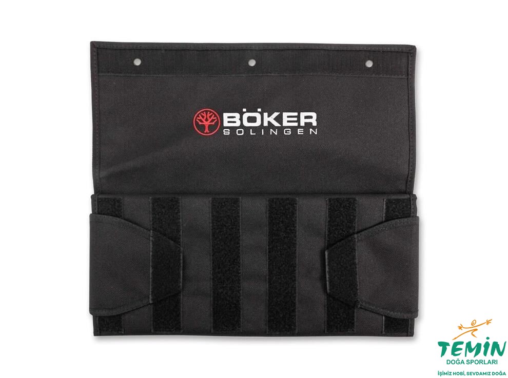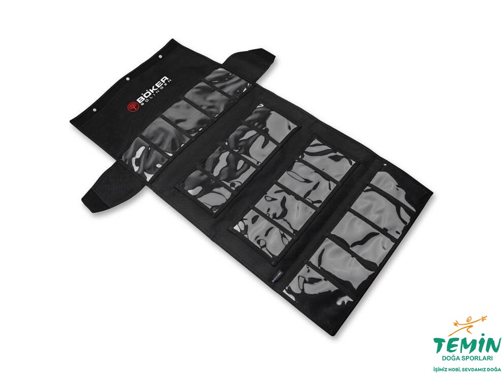 Düzen hayatın yarısıdır, diğer yarısı ise kullanışlı Böker pencereli çakı çantası'ndan geçer. Değerli çakı koleksiyonunuzu çizilmelere, aşınmalara ve kirlenmelere karşı güvenli bir şekilde saklamak veya taşımak için çakı çantası, şeffaf bölmeli 18 ayrı bölme sunar. Dış bölmeler, daha büyük çakıları kolayca yerleştirmek için ekstra geniş tutulmuştur. Büyük cırt cırtlı kapak üç adet içi boş perçinle donatılmıştır, böylece katlanır çakı çantası 18 adede kadar çakıyı temsili bir şekilde sunmak için duvara asılabilir. Arka taraftaki cırt cırtlı çıkarılabilir tutucu kartvizit veya not defteri için yer sağlarken, cırt cırtlı alan alternatif olarak yamalar için de kullanılabilir. Özenle işlenmiş Böker logosu, siyah bıçak kesesinin gizli görünümünü düzgün bir şekilde tamamlar. Her şey göz önünde ve her şey şık, her bıçak koleksiyoncusu için bir zorunluluk.