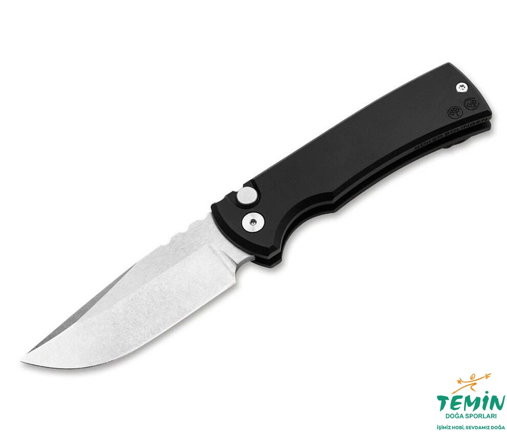 Düğme Kilidi, bıçağın hem açılmasını hem de kapanmasını kontrol eden basma düğmesi sayesinde güvenli ve güvenilir iki elle kullanımı sağlar. Otomatik modellerin aksine, bir dalga yayı bıçağı sürekli gergin tutar; bu da bıçağı açmak ve kapatmak için bilinçli bir el gücü gerektirir.