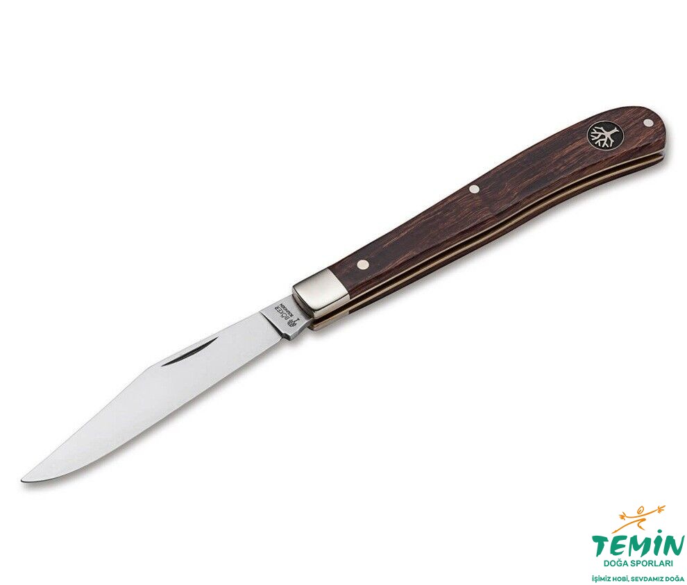 Trapper ve Delicate stilleri yüzyılı aşkın bir süredir klasik çakıların tanınmış uluslararası üreticilerinin ürün yelpazelerinde yer alan klasiklerdir. Geleneksel formlarında, her iki stilin de üst ve alt destekleri vardır. Uno serisinde, seriye adını veren bir değişiklik olarak sap ucundaki gövde destekleri yer almaz. Bu iki stil artık çiftlikte veya şantiyede sadece yardımcı çakı olarak görülmüyor, aynı zamanda berber dükkanlarında veya piknikte üst düzey EDC çakıları olarak da kullanılıyor. Sertifikalı ithal çöl demir ağacından yapılmış ve pirinç gövdelere perçinlenmiş özel uyumlu sap kabzaları seçtik. Ağızlar 440C'den oluşur ve kilitlenmez. Boker Manufactory Solingen tarafından üretilen tamamen el yapımı slipjoint çakı, tarihi Boker ağaç sembolünün yeni versiyonuyla birlikte gelir.
