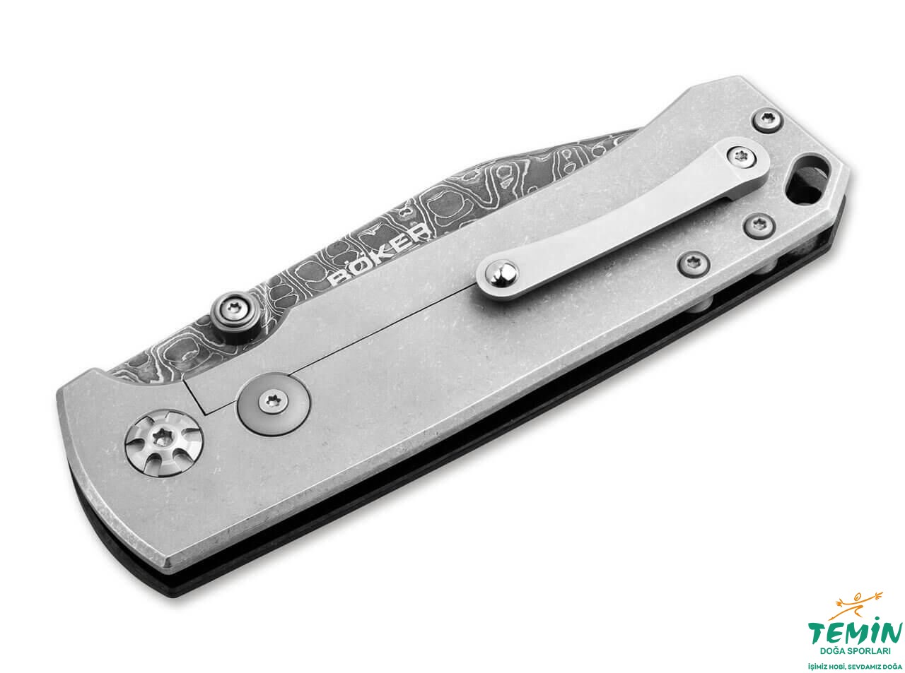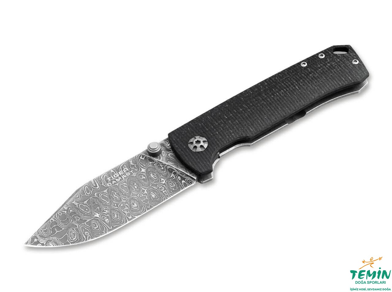 Böker’in Solingen’deki fabrikasında, el işçiliğiyle üretilen ve seri numarası taşıyan Böker Tiger-Damascus; orijinallik sertifikası ve şeffaf sergi kutusu ile sunuluyor.