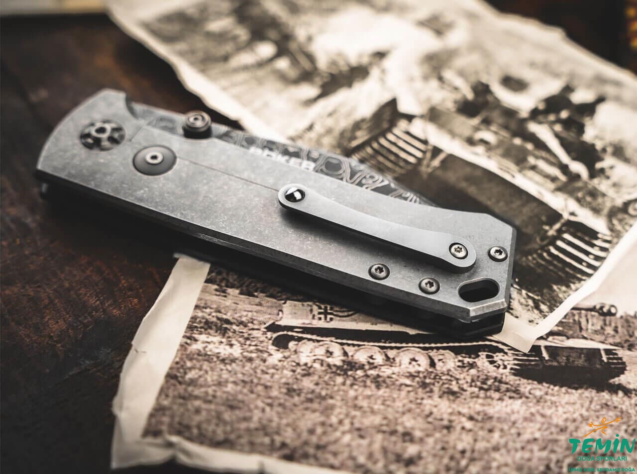 Keskin kenarı uca kadar düz biçimde çıkan (straight edge) yapısıyla da Tiger tankının köşeli yapısına bir göndermede bulunan bu çakının namlusu, Bauska'da etkisiz hâle getirilen tankın çeliğinden dövülen benzersiz bir Damascus çelikten imal edilmiştir. Paslanmaz olmayan mozaik Damascus, Chad Nichols tarafından ‘‘Intrepid’’ deseninde, Böker için elde dövülmüştür. Desen, Tiger'ın ağır paletlerinin zeminde bıraktığı izleri andırmaktadır.
