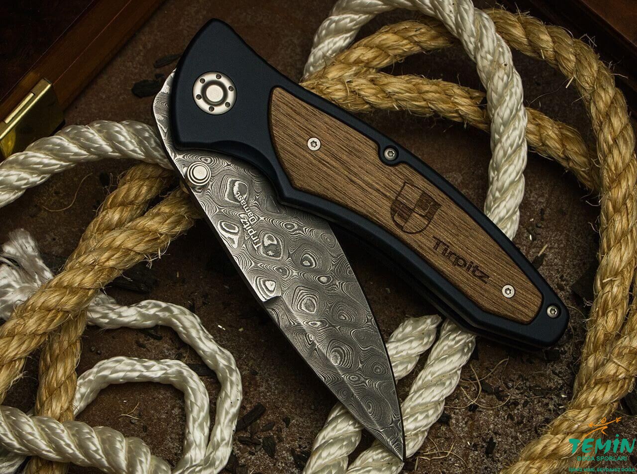 Yönü değiştirilebilir nitelikteki cep klipsi (Klipsin boşluğu, Böker armasına sahip bir parça tarafından kapatılmaktadır.) sayesinde kolaylıkla taşınabilen ve seri numarasına sahip çakı, sertifikasıyla birlikte, şeffaf sergi kutusu içinde sunulmaktadır. Tarihi, geleneği ve modern teknolojiyi benzersiz bir şekilde birleştiren Böker Tirpitz-Damascus; deniz ve denizcilikle ilgili olanlar başta olmak üzere, tüm bıçak koleksiyoncularının elde etmek istediği özel bir çakıdır.
