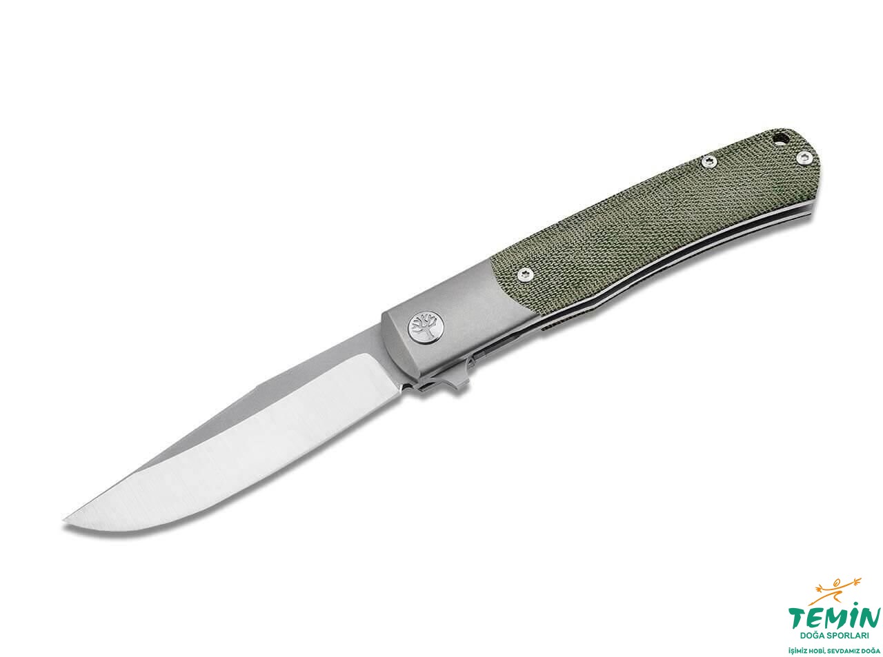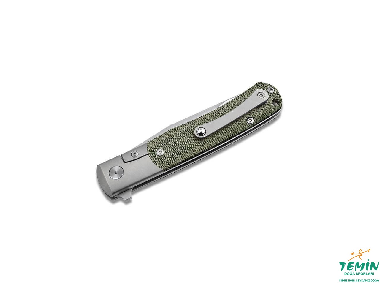 Pivot bağlantı elemanının önünde görülen Böker arması ve tek parça titanyumdan öğütülen cep klipsi, dekoratif vurgulardır. Çıkarılabilir nitelikteki cep klipsinin ucuna titanyum bir top yerleştirilmiştir. Böylelikle hem sapın çizilmesinin önüne geçilmiştir hem de klipsin daha sağlıklı (sıkıştırma görevini iyi yaparak ve takılmadan) kullanılabilmesi sağlanmıştır.