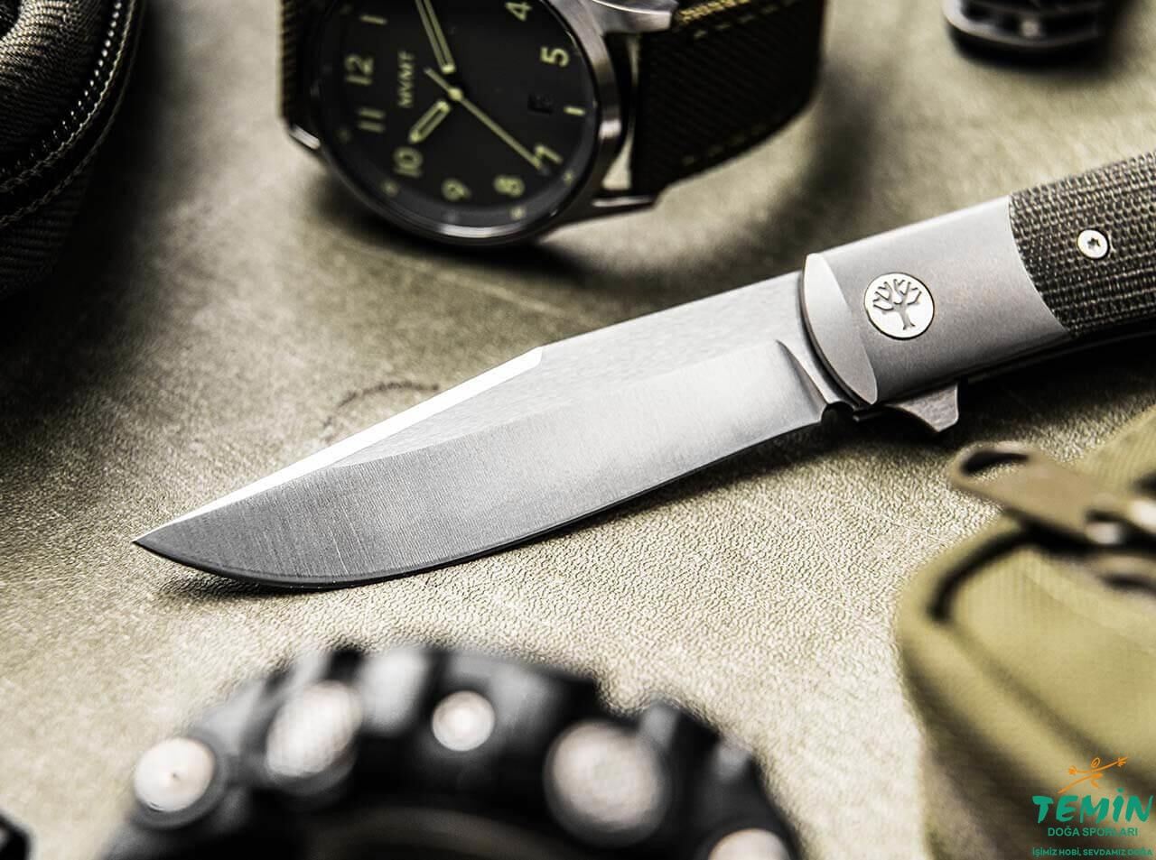 Yumuşak ve yuvarlak çizgilerini koruyan ve elleri rahatsız etmeden iyi kavranabilen ve oval biçimde sonlanan sapın dip kısmına doğru bir kordon deliği (lanyard hole) de açılmıştır. Çakı parçalarının bir araya getirilmesinde cıvatalardan faydalanılmıştır.