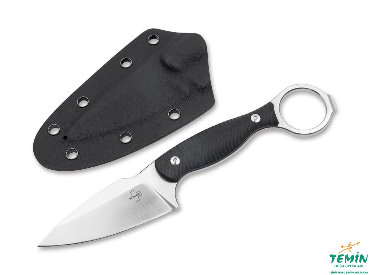İsmi ‘‘iş birlikçi’’ anlamına gelen Böker Plus Accomplice D2 (02BO176), içine tam oturduğu kydex kılıfı ve kemer askı aparatı ile sunulmaktadır.