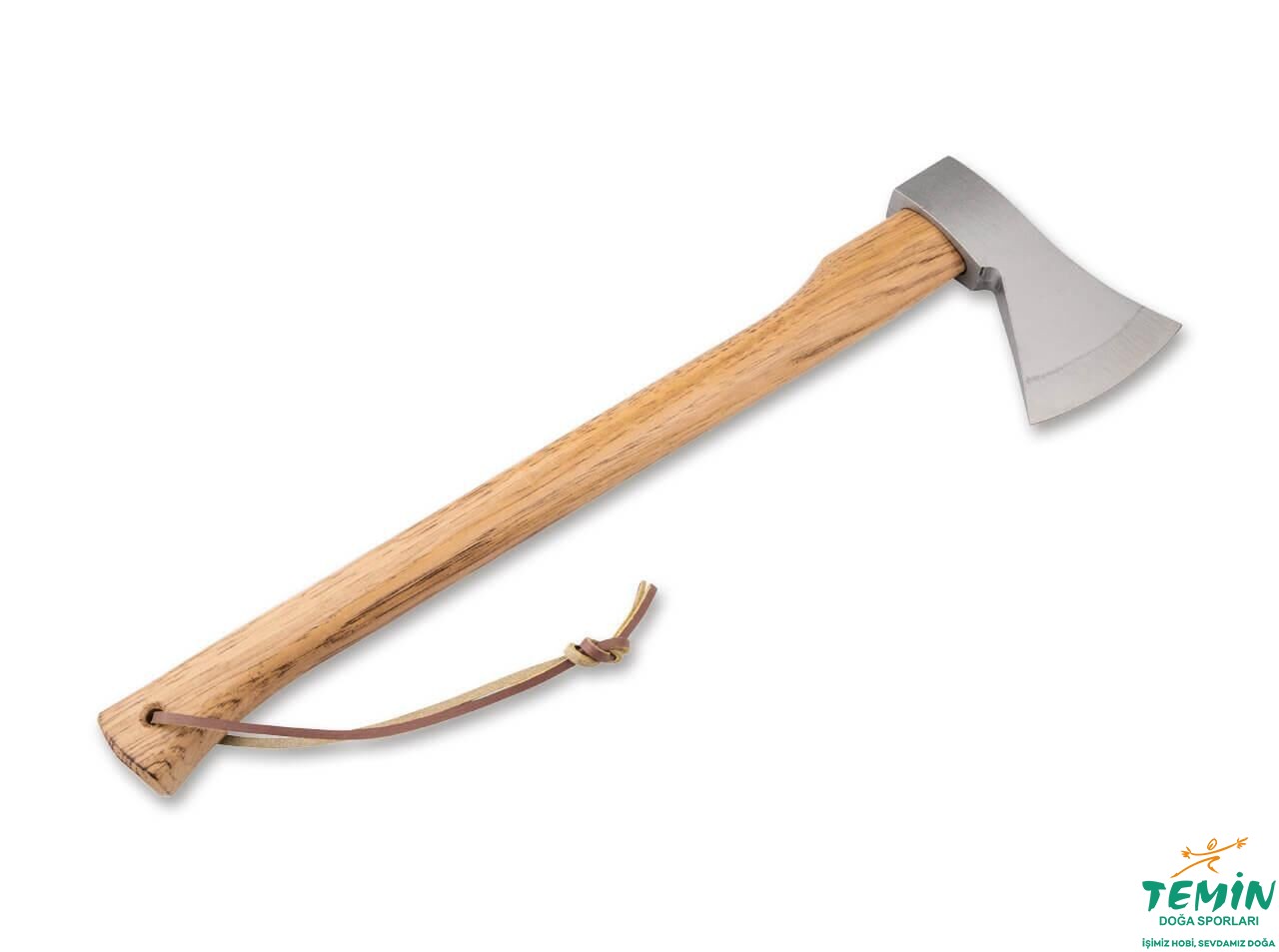 Böker Plus Appalachian (Balta, Doğu Amerika’daki kültürel bir bölgenin adını taşımaktadır. Bölge içinde, kuzeyde Kanada’ya dek uzanan ve aynı isme sahip dağlar bulunmaktadır.) baltaları serisinden olan izlediğiniz ürün, 1055 çelikten imal edilen bir kafaya sahiptir. Paslanmaya karşı yağlanarak korunabilen bu seçenek, balta kafası için istenen sertliği ve bileme kolaylığını optimize etmektedir. Baltanın yapısı, ‘‘Rheinischer Form’’ [Almanya’da bir baltanın tipi, genellikle bir bölgeye atfen (Rheinische Axt, Berliner Axt, Bayerische Axt gibi) ifade edilir. Keskin kenara doğru simetrik olarak incelen ve hem alttan hem de üstten giderek (keskin kenara yaklaştıkça) genişleyen karakterde kafa taşıyan bu yapı ile, el baltalarında veya bizdeki adıyla nacaklarda sıkça karşılaşılır.] olarak belirtilmektedir.