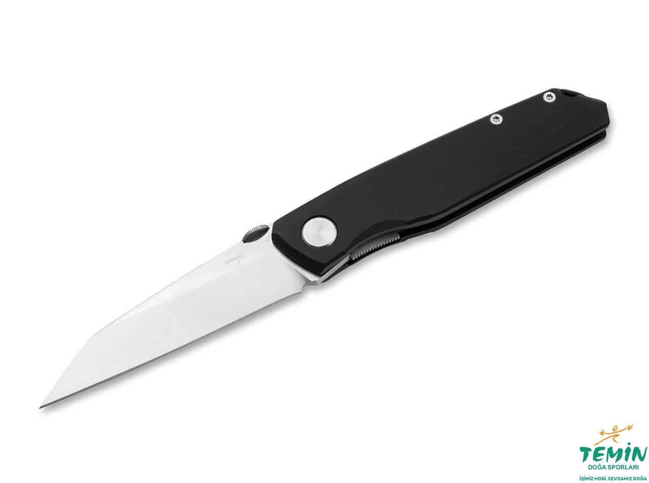 Parçalarının ve çizgilerinin birbiriyle uyumu üst düzeyde olan estetik Böker Plus Connector G-10, gündelik kullanıma uygun olan kompakt bir çakıdır. D2 çelikten imal edilen Wharncliffe yapısındaki namluya, düz ağız açımı (flat grind) uygulanmıştır. Ağız başlangıç çizgisinin eğik kullanılmasıyla önde kazanılan alan, kesmeye saplayarak başlamaya yarayan bir çentiğe (choil) yer açmıştır. Ağız açım çizgisi (grind line) de keskin kenara paralel biçimde açılıdır (tıpkı bir ‘‘Kiridashi’’ gibi) ve uç kısmın başlangıcında sırtı yakalamaktadır. Çıkarılabilir nitelikteki başparmak diski (thumb disc) ile istenen elle ve kolaylıkla açılabilen namlunun hareketi, bilyeli rulmanlar sayesinde, pürüzsüzdür. Kavramaya yardımcı çentikler, hâkimiyeti artırmaktadır.