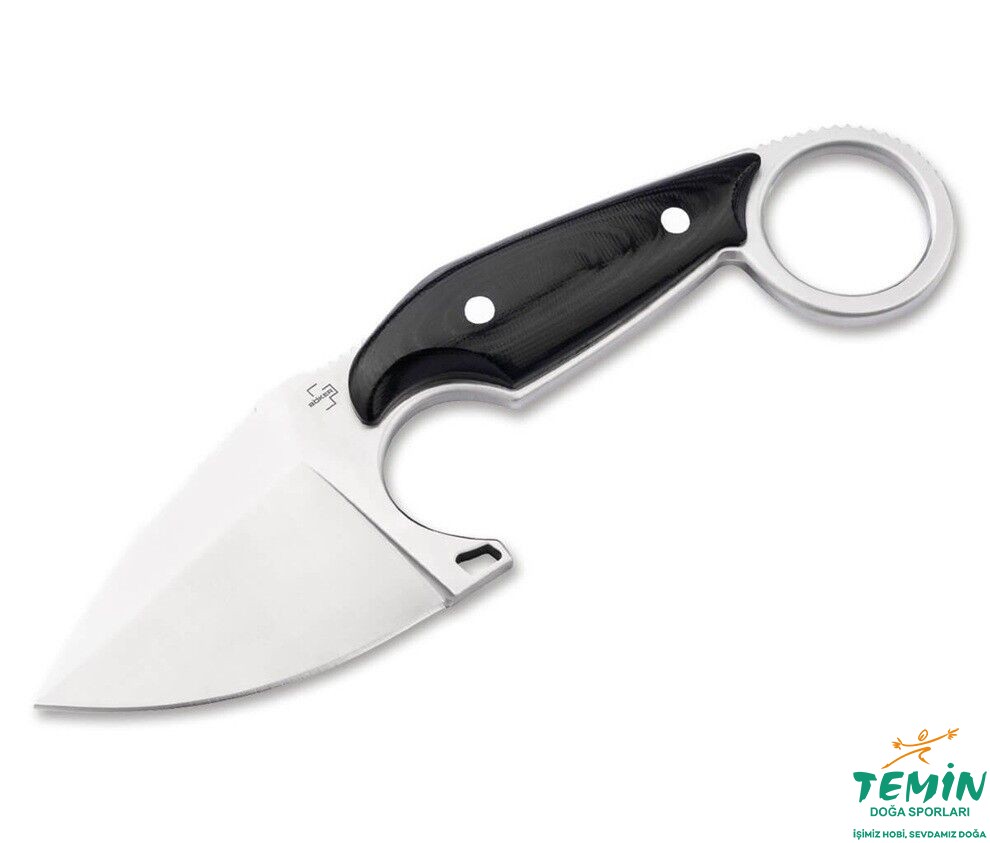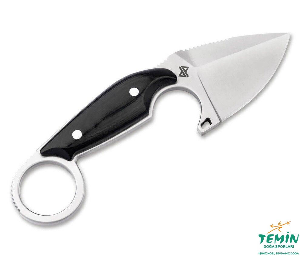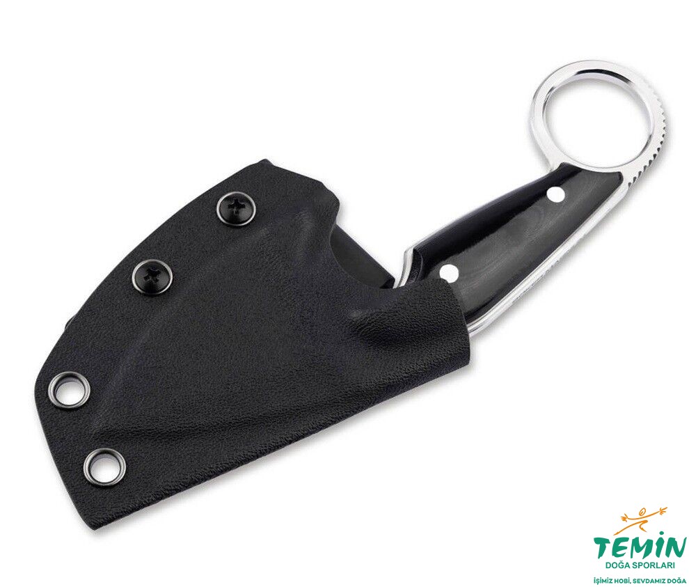 Saten kaplamalı D2 drop-point bıçak, karton kesme, ip kesme ve hafif dış mekan işleri gibi yaygın EDC görevlerinde mükemmeldir. Sağlam full tang yapısı, bıçak sırtı ve başparmak dayanağı boyunca yer alan tırtıllarla birleşerek stabilite ve güvenli kullanım sağlar. Sapın ucundaki kendine özgü karambit tarzı halka, tutuşu güçlendirir ve güçlü, kontrollü kesimler sağlar.