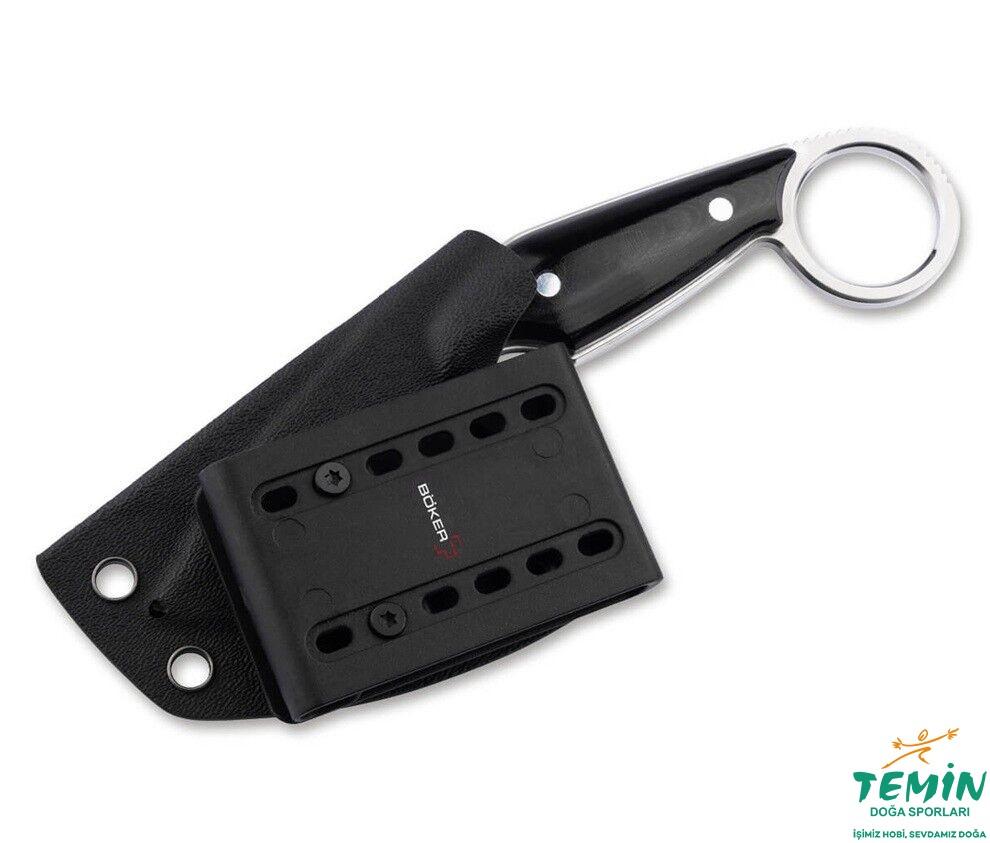 Zarif çivili siyah Micarta sap, mükemmel ergonomi ve güvenli bir el pozisyonu sağlar. Enki, hassas bir şekilde uyarlanmış Kydex kılıfla birlikte sunulur; bu sayede boyun bıçağı olarak rahatça takılabilir veya göze çarpmayan bir yedek bıçak olarak taşınabilir.