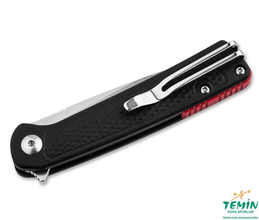 Günlük EDC’de çevik ve pratik: flipper hızlı açar, çift bilyeli mekanizma güvenli tutuş verir. 1.4116 çelik 74 mm drop point; cımbız + ters çevrilebilir klips.