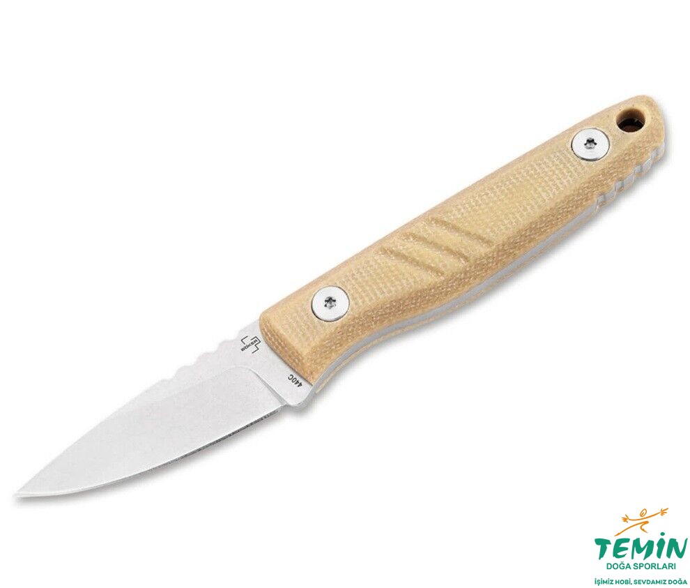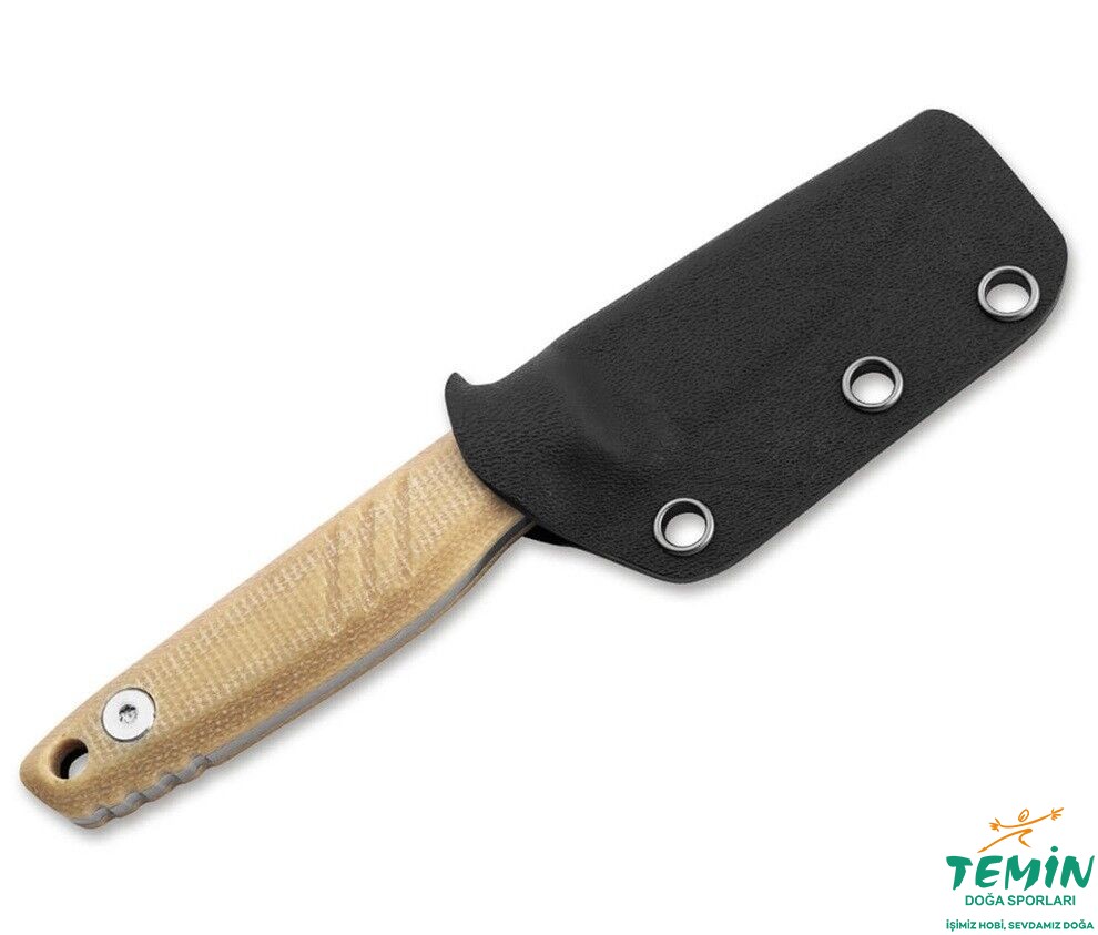 Sağlam full tang yapısı ve taş yıkama kaplamalı 440C drop point uçlu bıçak ile açık kahverengi mikarta malzemeden yapılmış saptan oluşan kanıtlanmış özellikleri, bu küçük güç merkezinin daha büyük muadillerinden hiçbir şekilde geri kalmadığını kanıtlamaktadır.