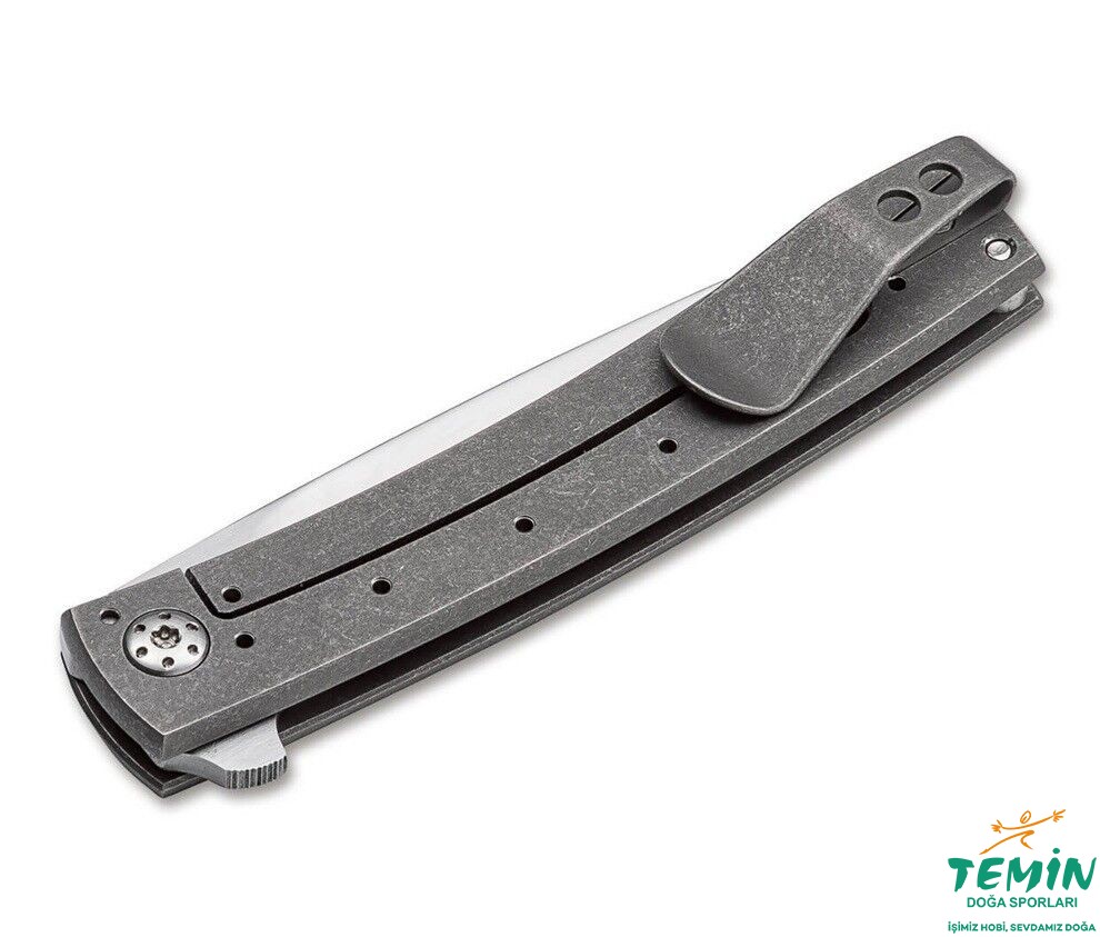 En başından beri Brad Zinker, Boker Plus FR'yi daha sağlam beyefendi çakıları yelpazesine yöneltti. Ancak FR Mini, sağlam maket bıçağının cazibesini azaltmadan sağlam çekiciliği çok daha kompakt bir formata taşıyor. Şıklık, konfor ve işlevin başarılı bir sentezi. Titanyum framelock ve VG/10 ağız, bilyalı rulmanlar ve flipper. Klipsli (uç yukarı).