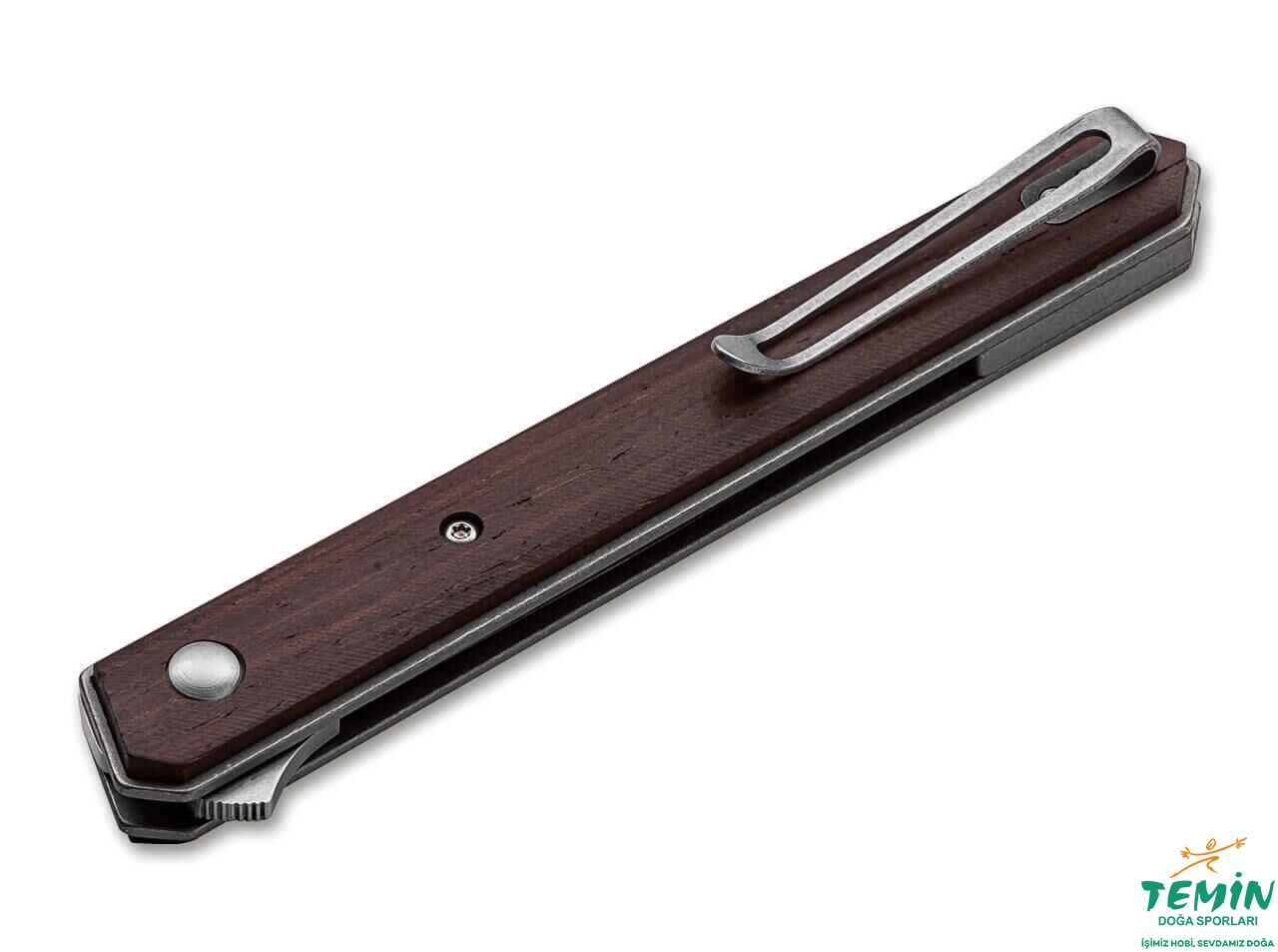 Dip kısmında gizlenmiş bir kordon deliği (lanyard hole) bulunan ve cep klipsi (çıkarılabilir) sayesinde, kalınca bir kalem gibi, kolaylıkla taşınabilen çakı; estetik ve işlevselliği bir arada sunmaktadır.
