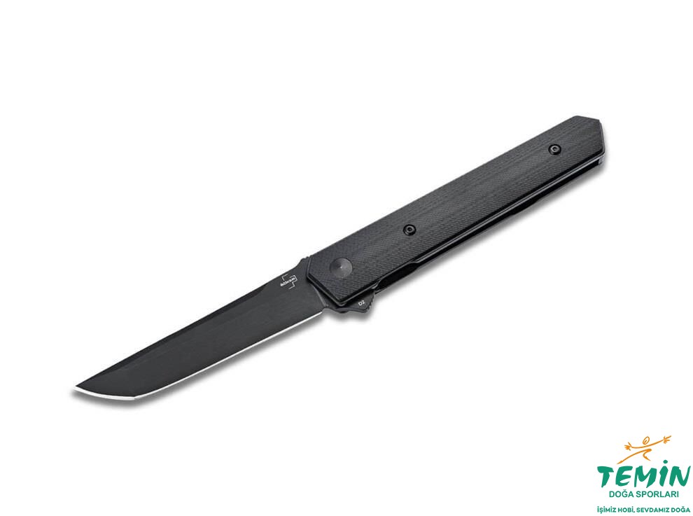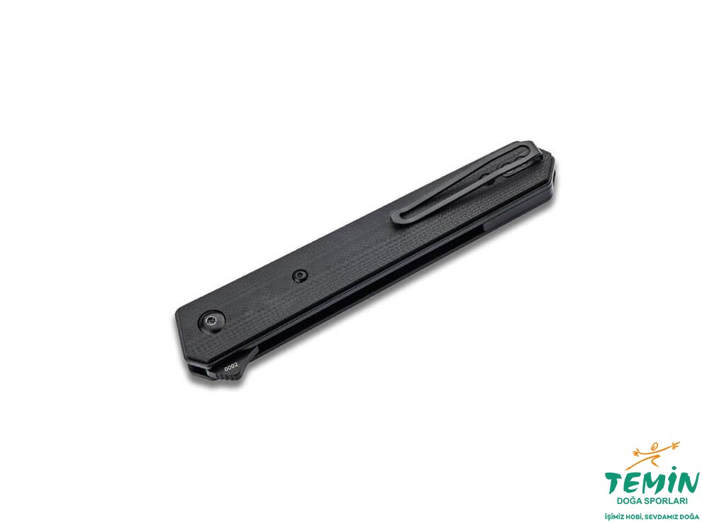 Japon-Amerikan tanto formu; ince gövde kapalıyken bıçağı tamamen saklar. Flipper hızlı açar, liner lock güven verir. Deep-carry klips + naylon kese.
