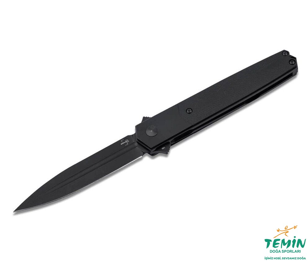 Bu çakının benzersizliği, asil titanyum desteklere ve G10'dan yapılmış sap kaplamalarına sahip sapı ile vurgulanıyor; bu özellikler, tamamen siyah bıçağa uyumlu bir şekilde çok özel bir görünüm kazandırıyor. İnce tasarımı ve özel malzemesi, Kwaiken'i bir beyefendi katlama bıçağı ile taktik bıçağı arasında asil bir geçiş modeli haline getiriyor. Saklama için yüksek kaliteli bir naylon kılıf ile birlikte sunulur. Çıkarılabilir klipsli (tip-up/r).