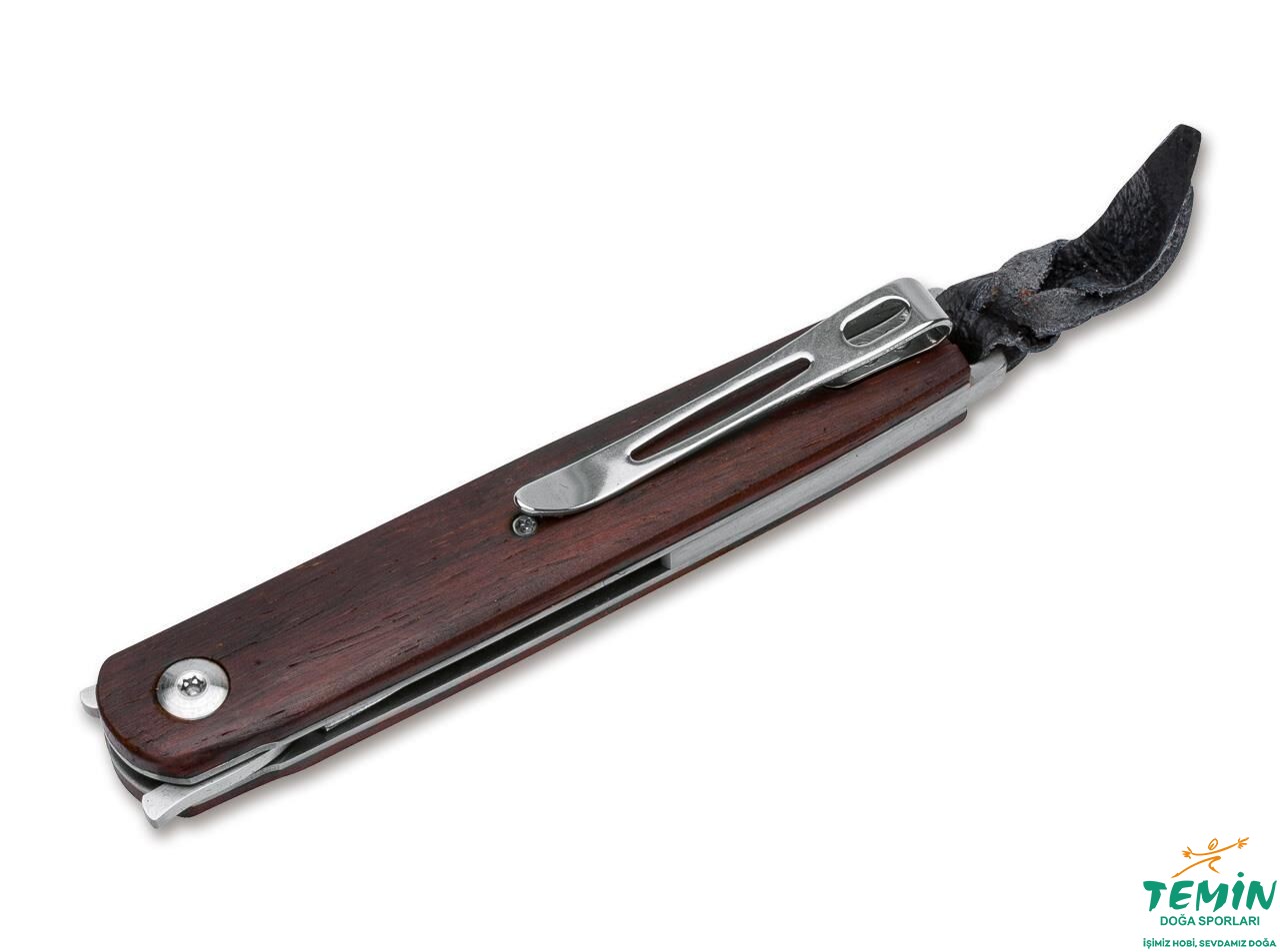 Yandan kilitli (linerlock) çakının bu versiyonunun sapı, ahşabın sıcaklığından ve doğallığından ödün vermeyenler için, paslanmaz çelik astarlar üzerine cocobolo sap malzemesi takılarak oluşturulmuştur. Dikey zımparalanarak parlatılan (saten) namlu üzerindeki izler (tabii ki namlu açık pozisyondayken), ahşabın damarlarıyla paralellik arz etmektedir.