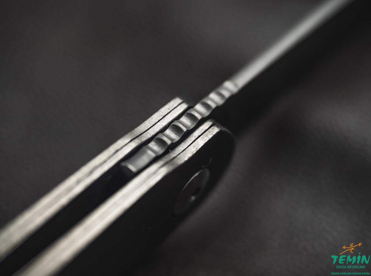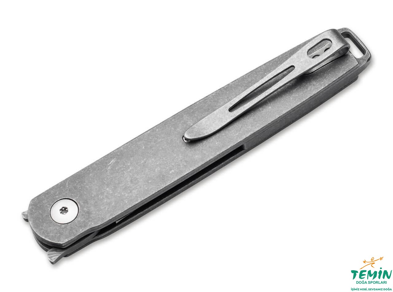 Yandan kilitli (linerlock) çakının sapı, titanyum astarlar üzerine yüksek mukavemetli titanyum sap malzemesi takılarak oluşturulmuştur. Ara parça ve cep klipsinin de titanyumdan imal edilmesi, çakının hafif ve sağlam niteliğine katkı sunmaktadır. Çakı parçalarının bir araya getirilmesinde cıvatalardan faydalanılmıştır.