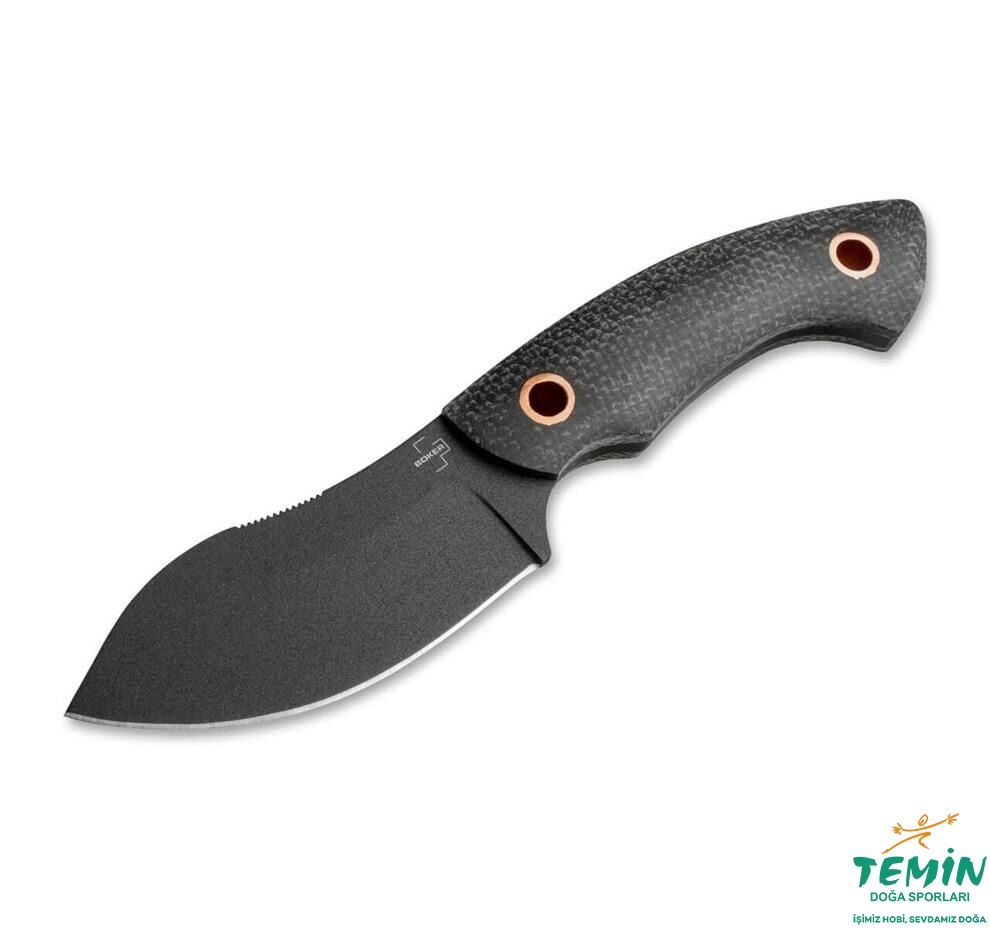 Kullanışlı Böker Plus Nessmi Pro, adını 1821'den 1890'a kadar Amerika Birleşik Devletleri'nin doğusunda yaşayan ve “Nessmuk” takma adıyla vahşi doğada yaşam hakkında kitaplar ve dergi makaleleri yazan Amerikalı maceracı George W. Sears'a borçludur. Danimarkalı bıçak üreticisi Jesper Voxnaes, onun mümkün olduğunca hafif dış mekan ekipmanı konseptini yaşatmak için Nessmuk bıçağının bu özellikle kompakt versiyonunu geliştirdi. Full tang yapıda D2'den üretilen bıçak sadece dış mekan kullanımı ve avcılık için uygun olmakla kalmıyor, aynı zamanda günlük yaşamda da değerini kanıtlıyor. Siyah mikartadan yapılmış sap yüzeyi ve bıçağın siyah toz kaplaması Nessmi Pro'ya taktiksel bir görünüm kazandırırken, içi boş bakır perçinler renkli bir vurgu ekler ve aynı zamanda kordon deliği görevi görür. Siyah deri kılıf ile birlikte verilir.