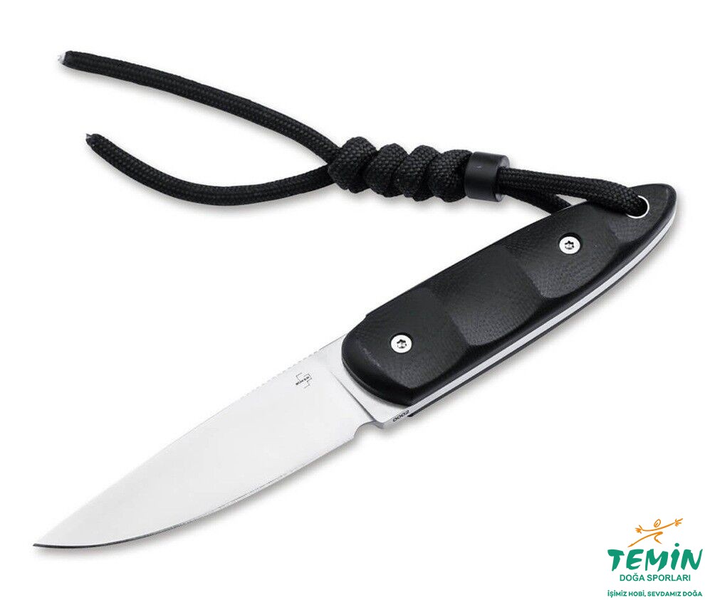 Saten kaplamalı drop-point bıçak, kuyruk yüzgecini andırıyor ve bıçak çeliğinin olağanüstü özellikleri sayesinde Neck Knife'ı günlük hayatta kusursuz bir şekilde kullanmanızı sağlıyor. Nitro-V, özellikle yüksek kenar tutma özelliği ile karakterize edilir, bu da kırsal alanda daha küçük kesme işlerini bile çocuk oyuncağı haline getirir.