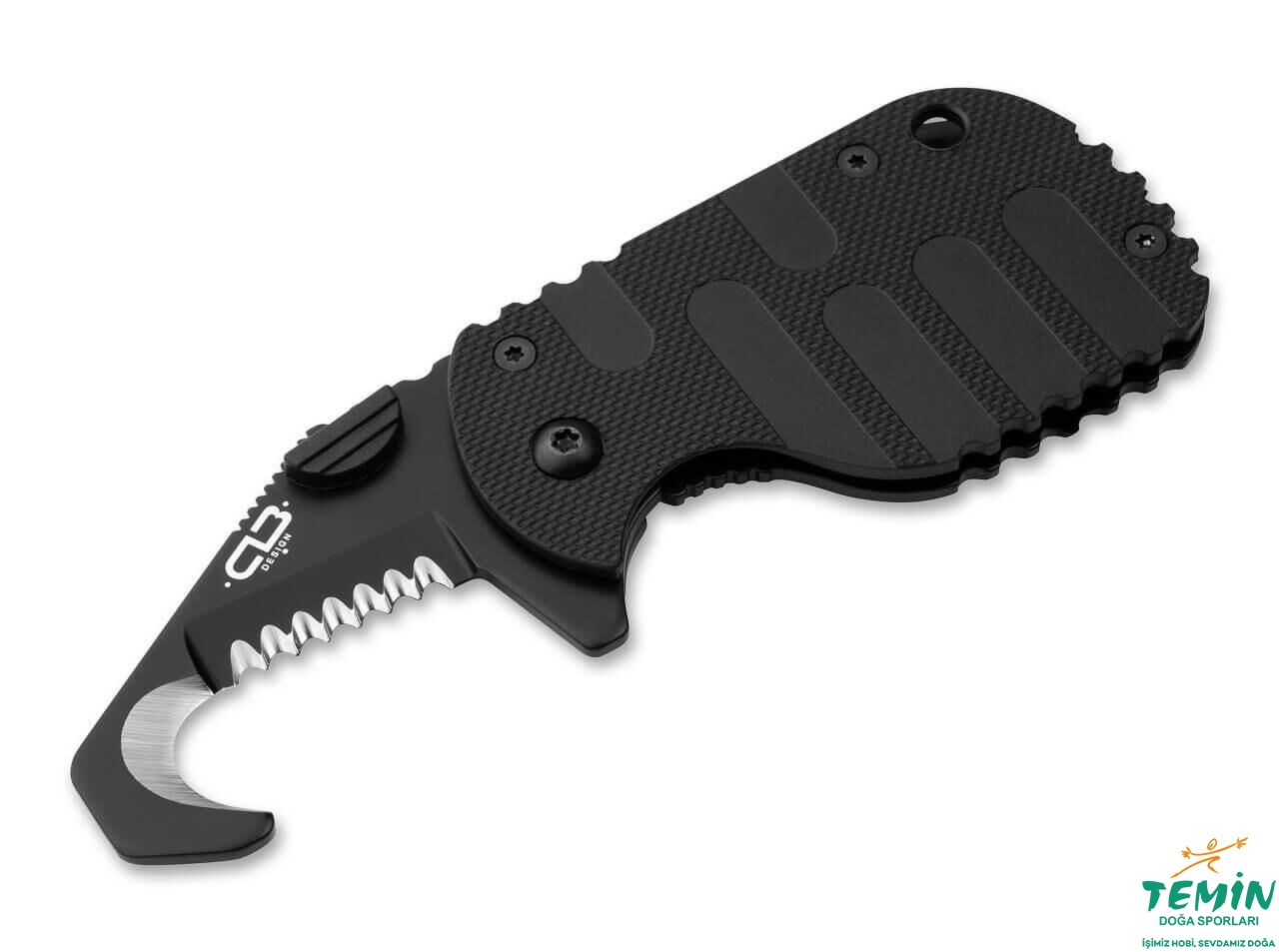 Sayısız pratik işlevi bir araya getiren ve acil durumlarda hayat kurtarabilen çakı, bağlantı elemanları dâhil olmak üzere, tamamen siyahtır.