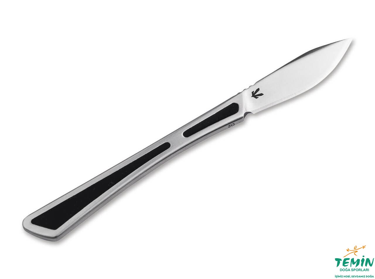 Alexander Krava’nın neşterden aldığı ilhamı açık şekilde sergileyen ve bunu adına da taşıyan bıçak; cerrahi hassasiyetle yapılabilecek temiz kesimler ve bunun sonucunda da başardıklarınızla gurur duymayı vadetmektedir. D2 çelikten imal edilen ve saten parlaklığında sonlandırılan bıçakta, bombeli bir namlu yapısı kullanılmıştır. Karton kutuları zahmetsizce açabileceğiniz gündelik kullanımdan, makasın boyunu aşan zanaat işlerine kadar kullanabileceğiniz bu ürün; sahip olduğu nitelikler ve donanımla, pratik bir boyun bıçağıdır. Sapın her iki yanına ikişer parça hâlinde epoksi ilaveler yapılmasa tam olarak ‘‘iskelet hâlinde’’ kabul edilebilecek bıçakta söz konusu kısımlar ve kavramaya yardımcı sıralı çentikler (jimpings), kavramayı ve hâkimiyeti artırmaktadır. Keskin kenarın altındaki minik çentik (choil), kesmeye saplayarak başlamaya hizmet etmektedir. Günlük ve hassas kesim işleri için gerekli el becerisini sağlayan Böker Plus Scalpel (02BO072), içine tam oturduğu kydex kılıfı ve kılıfı boyna asmak için kullanabileceğiniz top zincir ile sunulmaktadır.