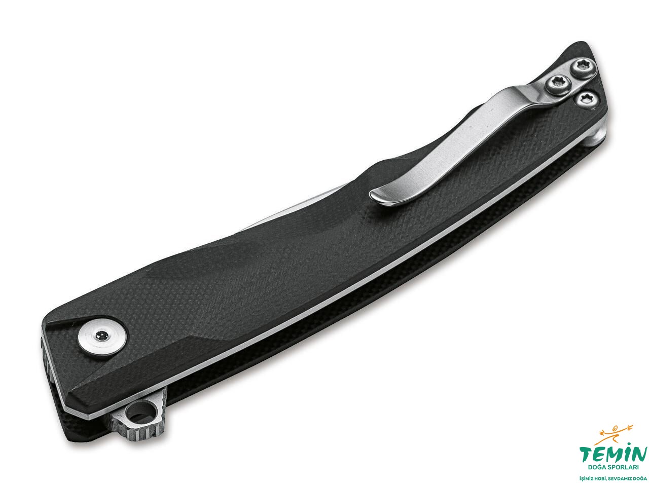 Böker Plus Shade, temiz ve modern çizgilere sahip kompakt bir çakıdır. Hafifliği ve boyutları sayesinde kolay taşınan bu çakı, yandan kilit (linerlock) mekanizmasına sahiptir. Flipper ve bilyeli rulmanlar sayesinde pürüzsüz açılan Shade’in D2 çelikten namlusu bulunmaktadır. Sap malzemesi olarak G10 tercihinde bulunulmuştur. Çakının hafifletilmesi adına, kilit görevinde olmayan kanatta çelik astar kullanılmamıştır ve flipper üzerinde delik açılmıştır. G10 sap malzemesi ve onun üzerinde 3 boyutlu çalışılmasıyla, kompakt yapısına karşın, iyi kavranan çakının kolay taşınabilmesi için cep klipsi bulunmaktadır. Cep klipsi çıkarılabilmektedir.