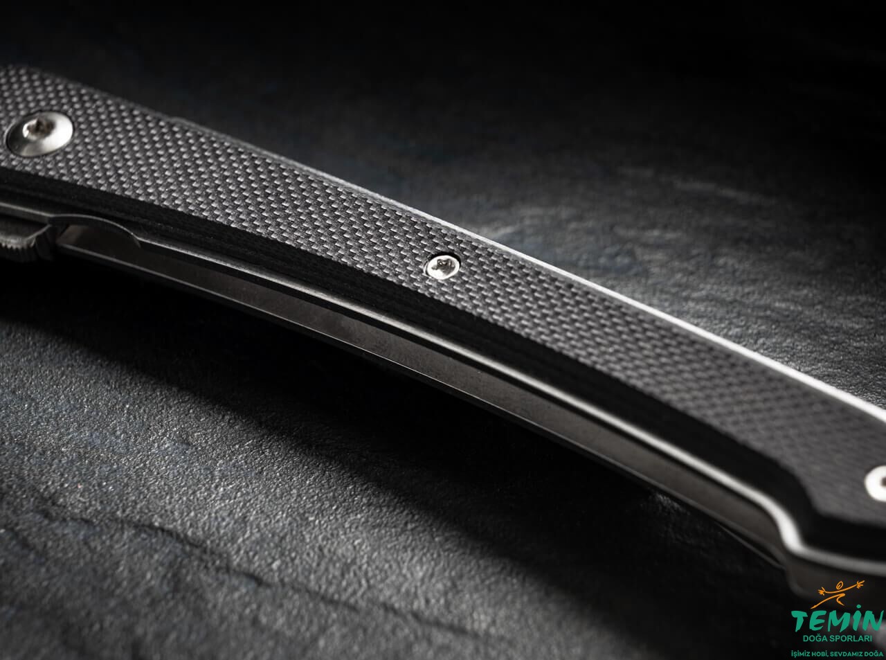 Siyah G10 sap malzemesi, paslanmaz çelik astarlar üzerine takılmıştır. Zaten kaydırmaz nitelikteki sap malzemesine pürüzlü bir doku kazandırılmış ve daha da iyi kavranabilmesi mümkün kılınmıştır. Çakı parçalarının bir araya getirilmesinde cıvatalardan faydalanılmıştır.