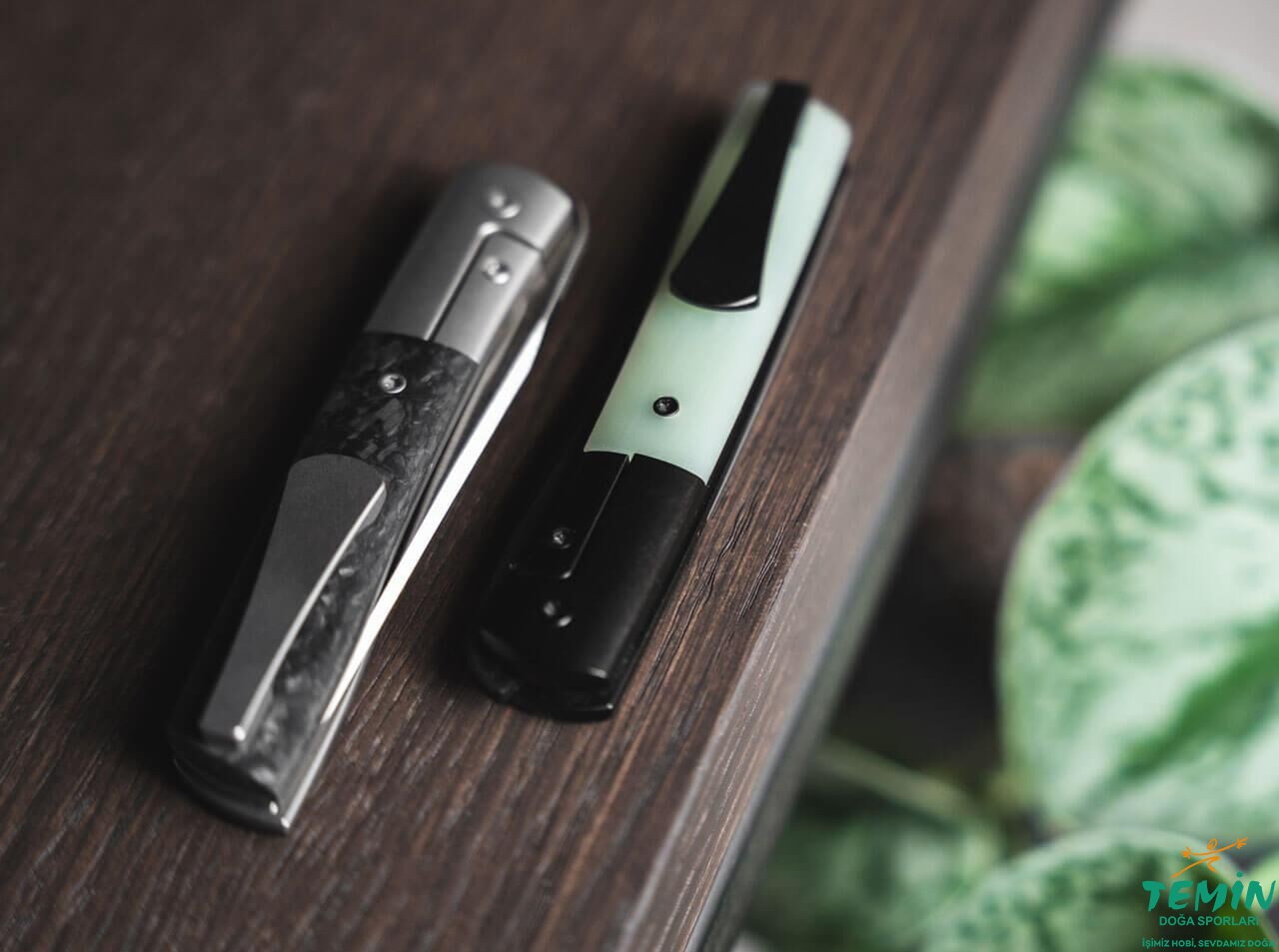 Tek parça titanyumdan işlenerek imal edilen cep klipsi sayesinde kolaylıkla taşınabilen Urban Trapper Premium CF, zarar görmeden saklanabilmesi için, yüksek kalitede naylondan yapılan fermuarlı kesesi içinde sunulmaktadır.