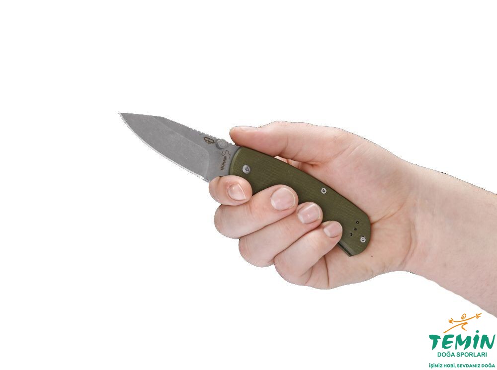 Tasarımı Hawaii’li Chad Los Banos'a ait bir slipjoint (Slipjoint çakılar en yaygın çakılardır. Mekanik bir kilide sahip olmadıkları için dikkatli kullanım gerektirir.) çakı. Slipjoint olmasına karşın güçlü yay mekanizması (spring) sayesinde oldukça güvenli. Namlusu mat taşlı 440C çelikten, kabzası haki G10'dan imal edilmiş. Çift yönlü thumbstud (başparmak çıkıntısı) açma kolaylığı sağlıyor. Dokulu G10 yanında, balçak altındaki parmak oluğu ve balçağa yakın yerde gövde arkasındaki kavramaya yardımcı girintiler (jimping) sayesinde son derece ergonomik ve kontrolü artırılmış bir çakı ortaya çıkmış. Taşıma klipsi, çakının istenen yüzüne takılabiliyor.